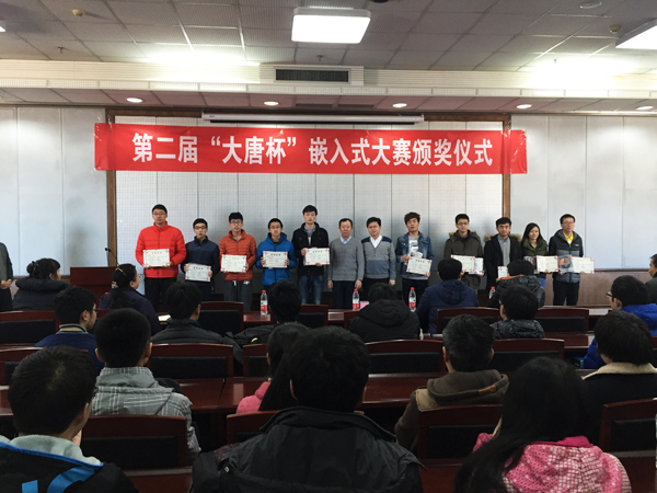 12月16日,米兰milan官方网站第二届“大唐杯”嵌入式设计与开发竞赛颁奖仪式在四教15层报告厅举行。教务处处长王景中、电信学院副院长曹淑琴、党委副书记王伟宾、通信系主任白文乐、大赛指导老师刘红、大唐移动通信学院副院长杨胜、产品总监张磊、产品经理李杨等出席活动并为获奖学生颁奖。会议由王伟宾主持。