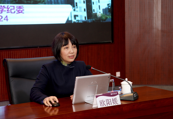 校纪委书记欧阳媛围绕监督执纪问责,结合米兰工作实际,就近期实施的《中国共产党纪律检查机关监督执纪工作规则(试行)》及米兰2017年纪检监察工作要点、党风廉政宣教计划、提醒约谈函询诫勉实施办法、主体责任全程记实办法等五个重要文件进行了深入浅出、全面系统、具体详尽的解读,为党员干部如何切实扛起责任、履行“一岗双责”释疑解惑。