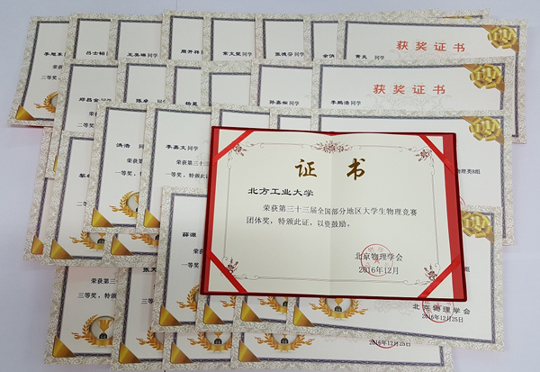 2016年第三十三届全国部分地区大学生物理竞赛于12月11日结束,近日竞赛成绩揭晓。米兰再次取得优异成绩,在同类院校中名列前茅,共有139名同学参赛,37人获奖,其中一等奖10名、二等奖10名、三等奖17名,其中一等奖获得人数再创历史新高,并获团体奖。