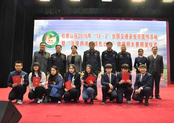 12月1日,石景山区“12.2”全国交通安全日宣传活动暨“治理拥堵、绿色出行”主题微视频作品大赛颁奖仪式在米兰图书信息楼报告厅隆重举行。参加活动的有石景山公安分局、市交管委、区交通支队、区文明办、区安监局等部门领导,学校党委副书记田红芳出席颁奖仪式并致辞。