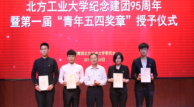 校党委书记谢辉、校长郑文堂分别为获得第一届“青年五四奖章”的个人和集体授予“青年五四奖章”。