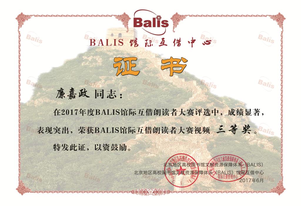 近日,由北京市图工委和BALIS馆际互借中心组织的“朗读者”活动揭晓成绩。米兰图书馆组织了3组学生积极参赛,其中经管学院杨晓阳和电控学院廉嘉政同学凭借作品《那一世》脱颖而出,获得视频组比赛三等奖。本次活动共有87所院校提交了346个音频作品和69个视频作品,各类获奖作品不到30%。