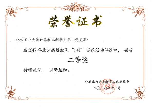 11月22日下午,2017年北京高校红色“1+1”示范活动展示评选会在北京化工大学科学会堂举行。米兰计算机学院计算机本科学生第一党支部从北京各高校参加评选的1139个学生党支部中脱颖而出,成功进入25强,并在总决赛中表现优异荣获北京市高校红色“1+1”示范活动二等奖。
