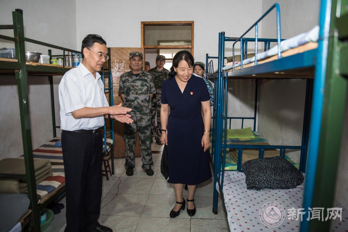 7月12日上午,校党委书记郑文堂、校党委副书记田红芳率领学工部(武装部)部长、相关部门和各学院领导以及辅导员、班导师代表组成的慰问团到延庆康庄611学生军训基地慰问2017级军训团师生。