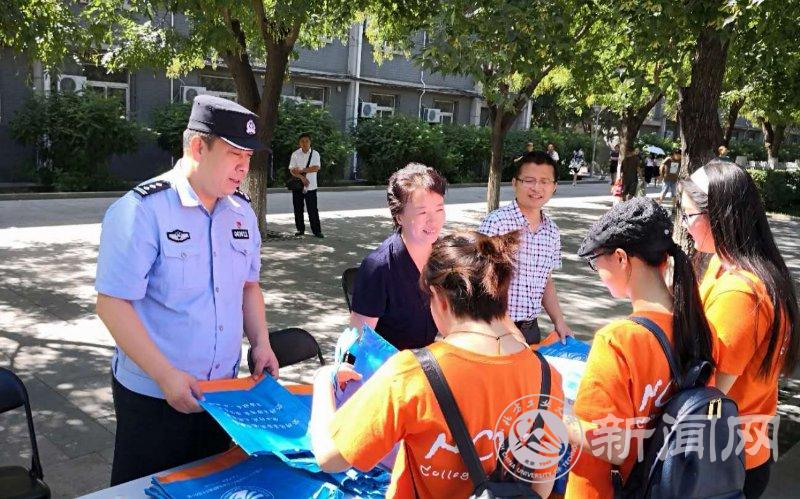 现场宣传,助力远离诈骗陷阱。开学季是网络电信诈骗的高发期,为防止师生上当受骗,学校邀请属地公安机关一同开展现场宣传教育活动。9月7日中午,八角派出所所长刘卫民带队,在毓秀广场布置展板,发放宣传品,用鲜活的案例向师生宣传防电信诈骗和校园贷等知识,广大师生积极参与,气氛热烈,取得了很好的宣传效果。