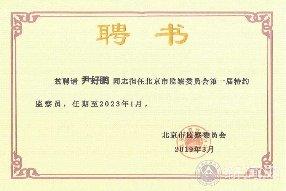 3月29日下午,北京市监察委员会召开第一届特约监察员聘请会议,北京市委常委、市纪委书记、市监委主任陈雍为特约监察员颁发了聘书,米兰尹好鹏副教授被聘为北京市监察委员会第一届特约监察员。