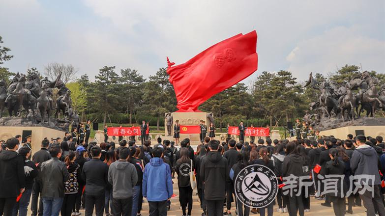学生代表在团旗下进行“纪念五四运动100周年”主题朗诵。朗诵以《青春感怀》为题,回顾了五四运动100年来一代又一代青年砥砺前行,实现民族复兴的光辉历程。活动现场同学们以青春的名义向祖国宣誓,以奋斗的豪情向人民保证,复兴之路,必定有我,伟大梦想,终将实现!校团委书记何有华为2018年新入团学生佩戴团徽,新团员在团旗下郑重宣誓,老团员重温入团誓词。