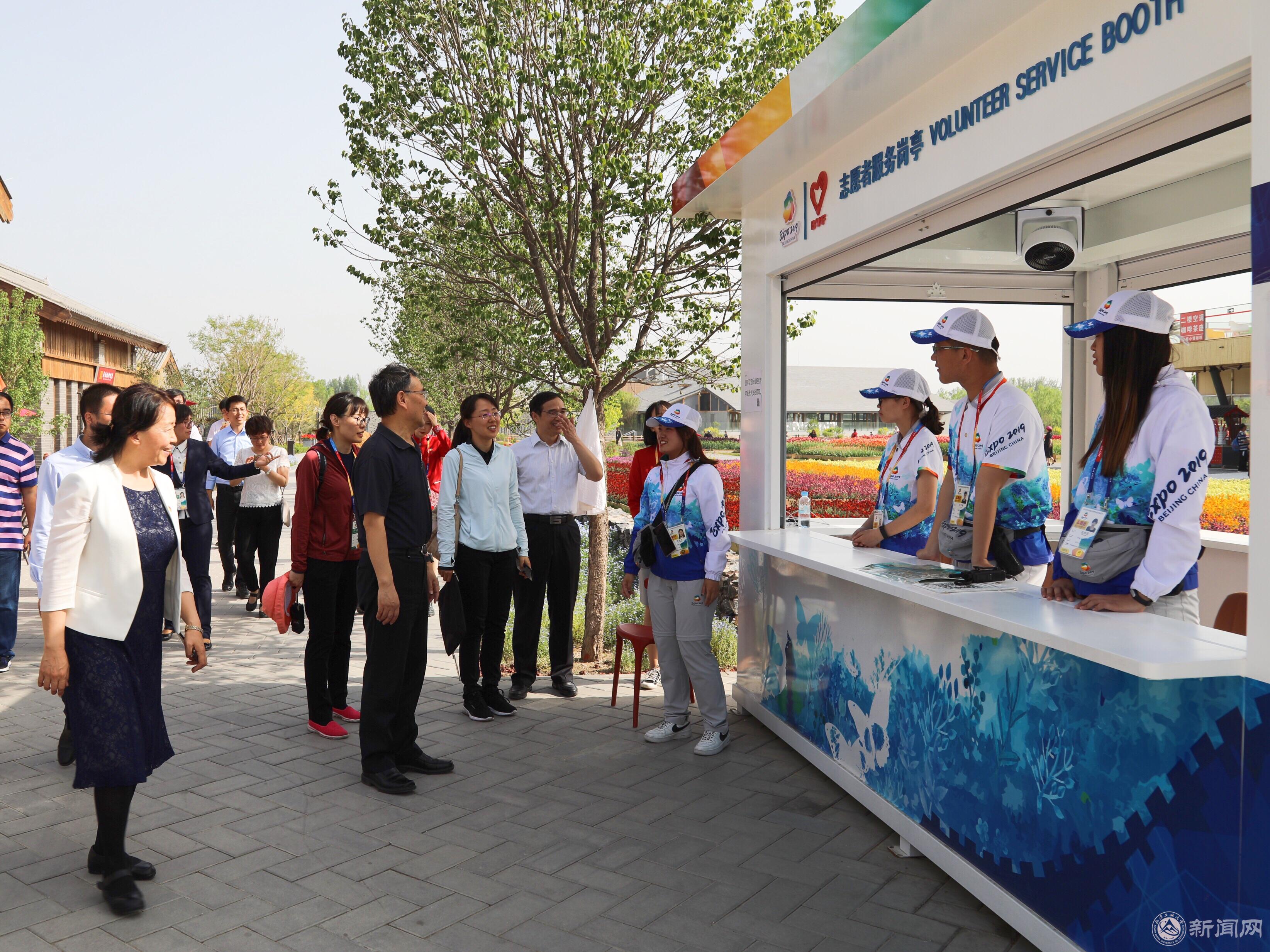 5月16日,校党委书记郑文堂、副书记田红芳以及相关职能部门负责人和各学院党委副书记等一行来到北京世界园艺博览会看望慰问米兰志愿者。世园局总经济师林晋文、世园局志愿者管理部部长代兵陪同慰问。