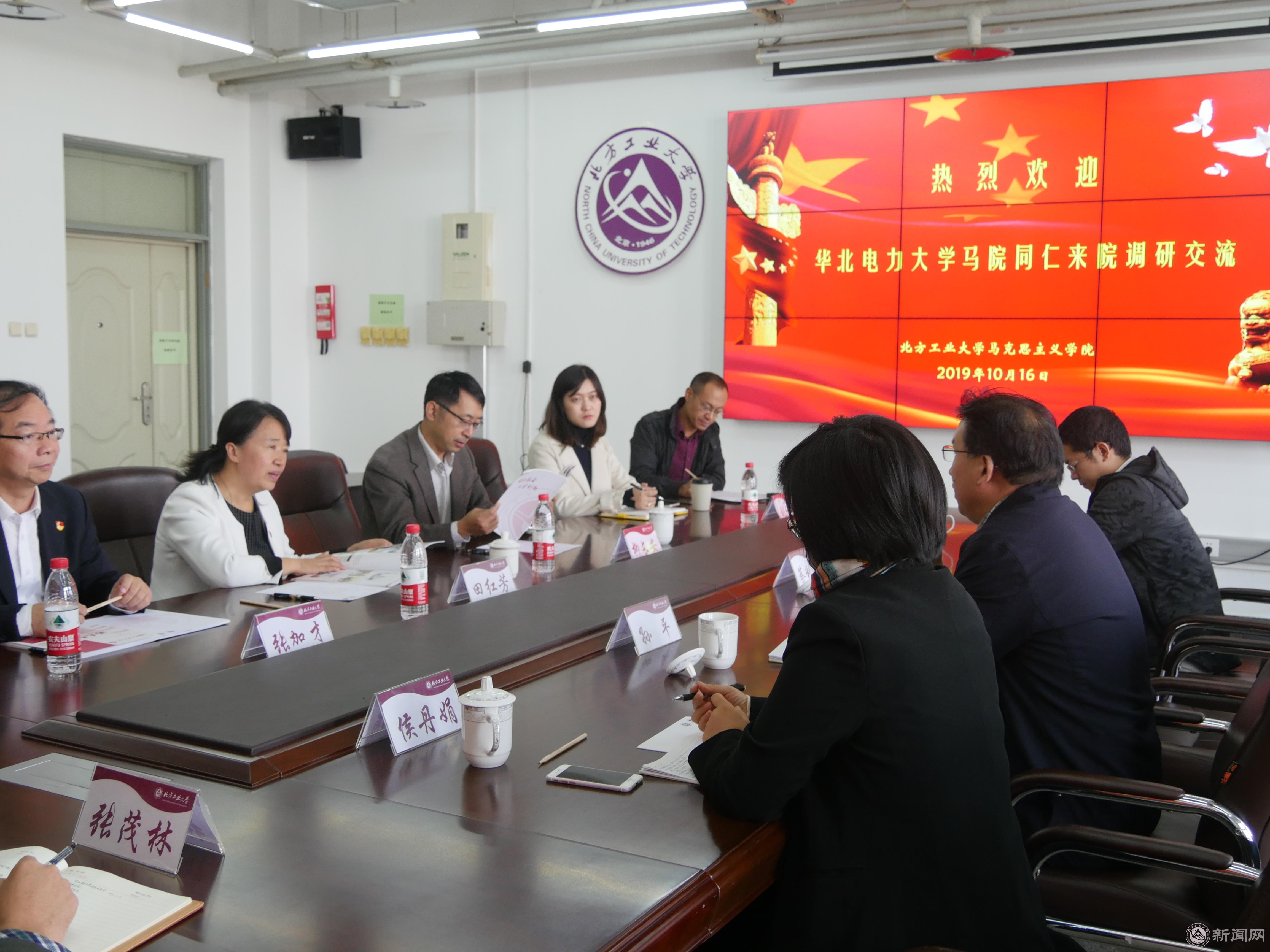 田红芳副书记向华北电力大学马院同仁的到来表示热烈欢迎,并介绍了米兰马院建设的基本情况。她谈到,米兰milan官方网站高度重视马院建设和思政课改革,学校明确了马院是加强思政工作的“引领学院”,思政课是落实立德树人根本任务的“引领课程”,高站位、全方位地予以重点扶持。近年来,马院在队伍建设、课程改革、科研立项等方面取得了积极进展,获批了北京高校思政课教育教学改革示范点、教育部示范优秀教学科研团队建设重点项目,举办了全国高校思政课实践教学研讨会并发起成立了思政课实践教学联盟,接受了北京市重点建设马克思主义学院专家入校考察,等等,有效地推动了学校中心工作的深入发展。