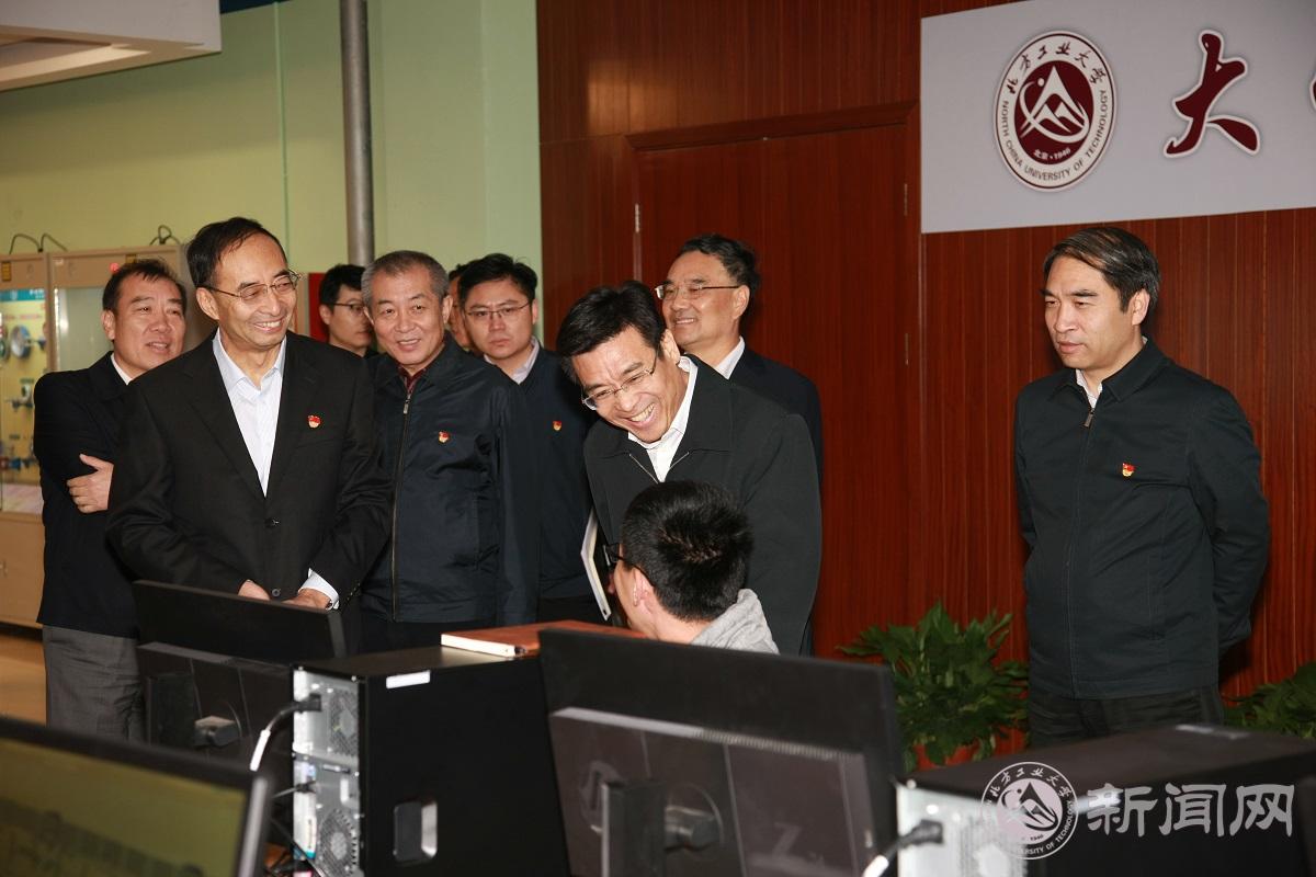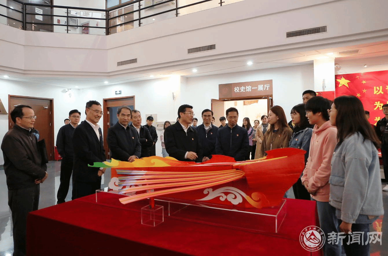 在校史馆,林克庆同志一行参观了以“不忘初心、牢记使命,我与祖国共奋进”为主题的学校庆祝新中国成立70周年主题教育活动成果展,全面了解学校践行党的初心和使命,为党育人、为国育才等方面情况。他指出,自1946年创立以来,学校在党建思政、人才培养、科学研究、改革创新等方面取得了众多成绩,看到学生们的作品创意、实验成果以及用心用情手工制作的“中华儿女”方阵彩车模型,很受感动。特别是学校把服务保障国庆作为最生动、最实际的主题教育,积极参与70周年庆典游行、联欢和志愿服务,充分展示出北方工大师生奋发有为、朝气蓬勃的精神风貌。