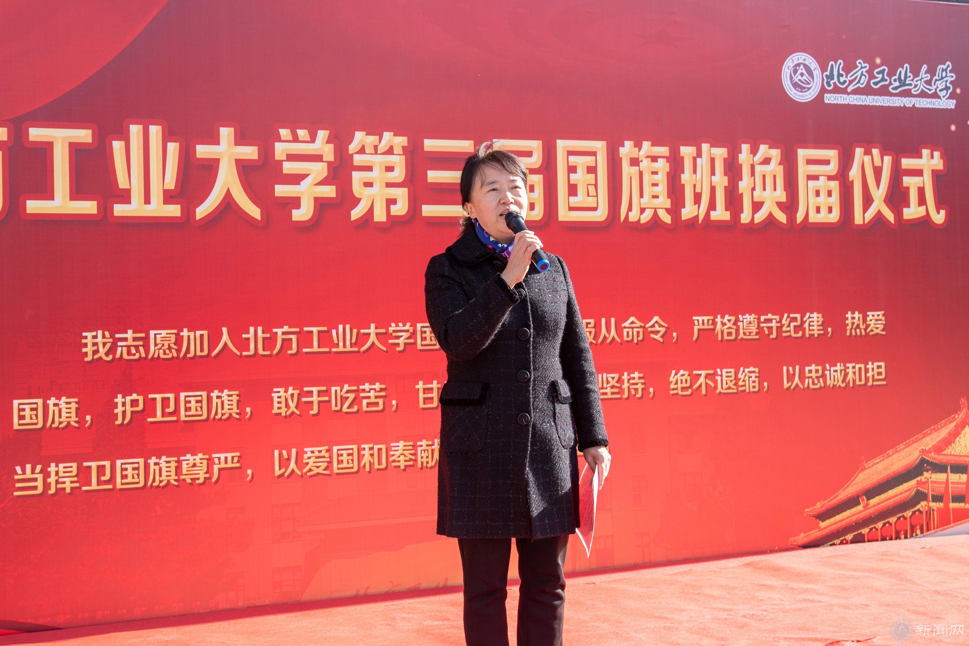 田红芳副书记在仪式上讲话。她指出,国旗班队员是北方工大校园里离国旗最近的人,队员们迎酷暑、斗严寒,以崇高的爱国热情、吃苦耐劳的精神、严于律己的品质赢得了校内师生的一致好评。升国旗活动已成为米兰爱国主义教育、集体主义教育、革命主义教育的重要载体。爱国主义是中华民族最重要的精神财富,她希望新一届国旗班成员再接再厉,牢记使命、勇于担当、践行责任、刻苦训练,将“爱国、爱旗、爱校”精神融入日常学习生活中,用实际行动感染身边的同学,涵养校园文化。她强调,全体北方工大师生都要有一颗爱国、报国的心,广大师生要将爱国和爱党、爱社会主义有机统一起来。让爱国主义精神成为每名北方工大人的坚定信念和精神依靠。