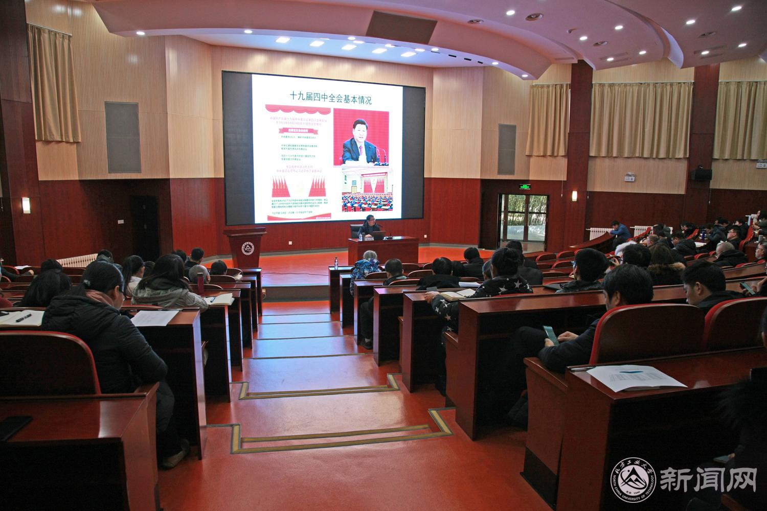 按照学校统一部署,12月19日下午,宣传部、组织部、纪委办公室联合组织开展党的十九届四中全会精神宣讲,邀请马克思主义学院周守高老师做主题宣讲。“毓秀青年”政治理论培训班学员、党支部书记、纪检委员等200余人参加了学习。宣讲会由宣传部副部长(主持工作)尉峰主持。