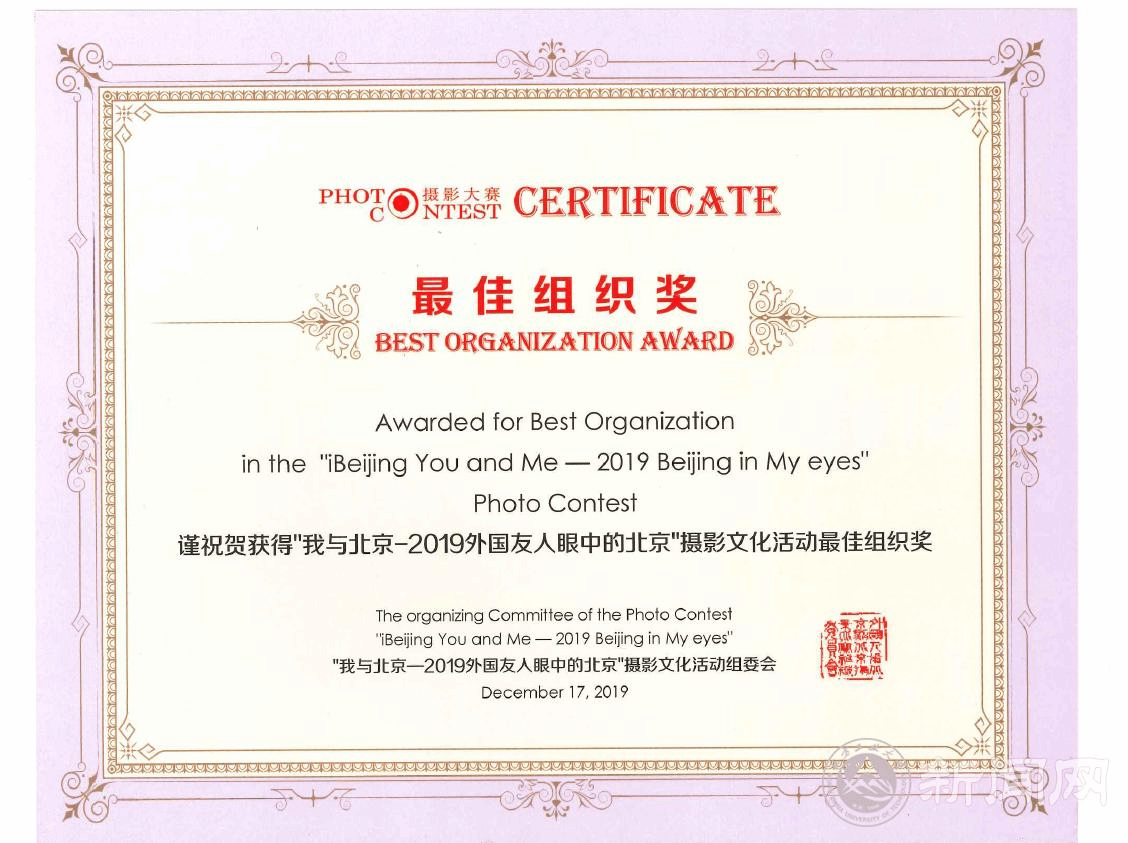 12月17日,2019外国友人眼中的北京摄影文化活动颁奖式及获奖作品展在北京市对外友协举行。今年摄影大赛的主题是“我与北京—iBeijing You and Me”,受到众多外国摄影爱好者广泛关注。本次活动共收到了来自65个国家的3000余幅作品,经过专家评审,选出了300幅入围作品,最终评选出了本届摄影活动的50幅优秀作品,并在此基础上选出一等奖2名、二等奖4名、三等奖8名,优秀奖36名,获奖作者来自38个国家。米兰留学生在此次摄影比赛中喜提8奖,共获一等奖1名,网络最佳人气奖1名,三等奖1名,优秀奖5名。米兰在此次比赛中获得最佳组织奖。