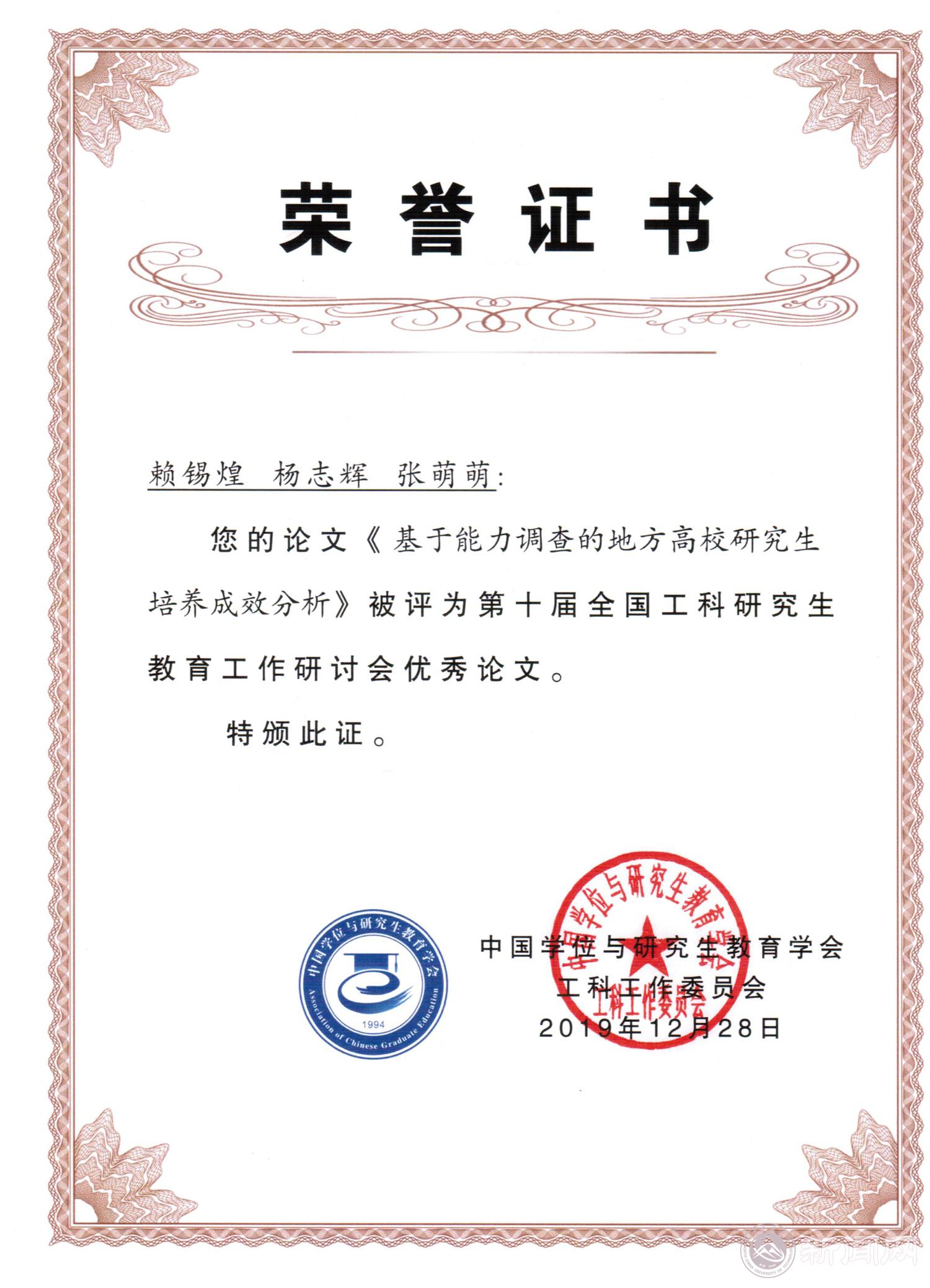 近日,2019年第十届全国工科研究生教育工作研讨会在昆明理工大学举办,来自全国192所高校的1000余名代表参加了会议。米兰研究生院教师赖锡煌、杨志辉、张萌萌撰写的 “基于能力调查的地方高校研究生培养成效分析”获得“优秀论文”奖。本次会议共录用来自国防科技大学、复旦大学、同济大学、山东大学、哈尔滨工业大学等全国高校投稿的论文86篇,经过专家委员会严格评审,从中遴选出9篇优秀论文,米兰是唯一获奖并应邀在会议上介绍成果的地方院校。