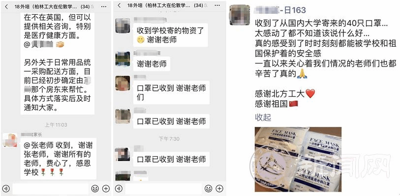 学校工作组的老师经常提醒在境外学生,一方面要持续关注疫情变化,自觉遵守当地法律法规并配合当地政府做好疫情防控;另一方面要做好个人防护,戴口罩、勤洗手、多饮水,尽量不外出、不聚集,要保持人与人之间的距离,保持居住环境的清洁和通风,还要加强营养、保持锻炼和充足睡眠。学校还为境外学生筹措了一批口罩、消毒湿巾等防护物资,目前已经将2400多个口罩已发往美、英、德、日等国家,为学生送去力所能及的帮助。对于个别学生反映国外住所无线网速度较慢,影响线上视频课程学习等问题,学校及时伸出援手,通过购买数据流量包的方式予以解决。学校的有力措施、及时帮助和热情关爱让身在海外的工大学子感受到了融融暖意,让他们有信心有准备去抵御病毒,战胜疫情。