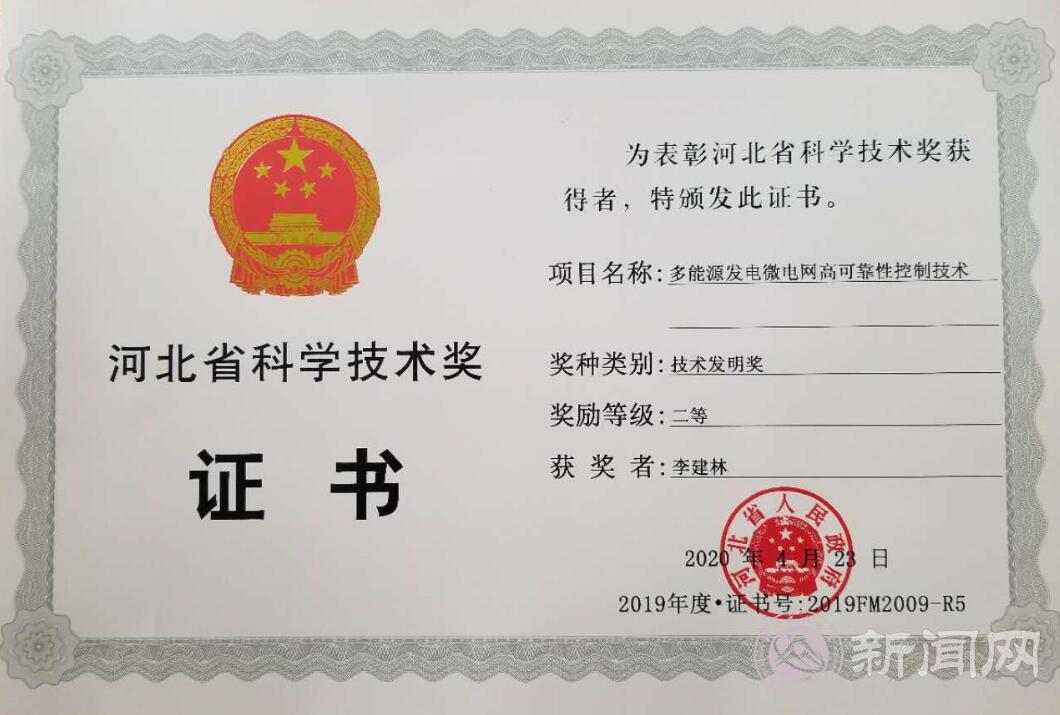 米兰参与的河北省电网储能微网项目获得了河北省技术发明二等奖,电气与控制工程学院李建林教授和胡长斌副教授共同参与了该项目。