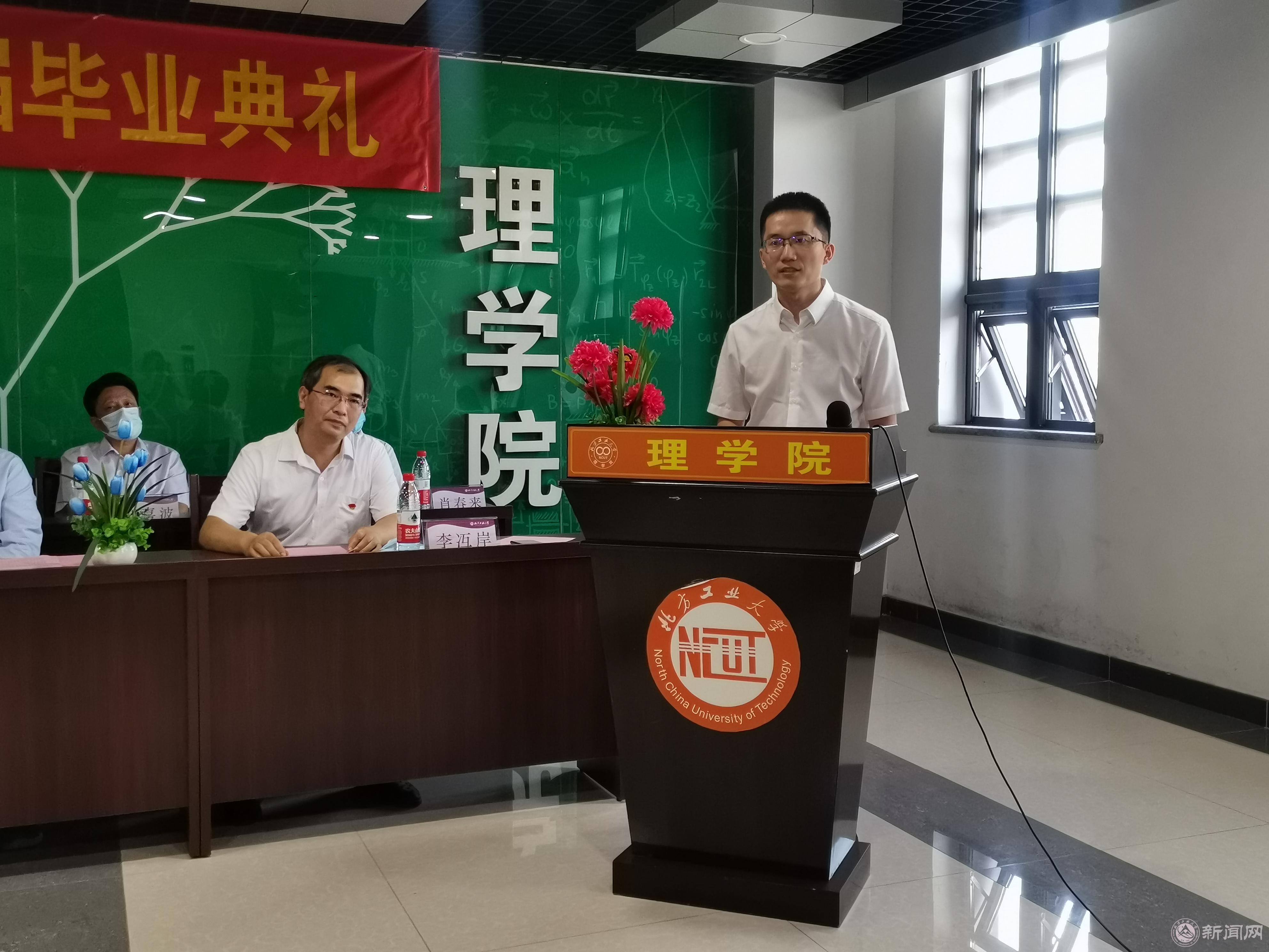 理学院党委书记龚维华宣读了理学院相关表彰决定并致辞。他对毕业的同学们提出了三点期望:一要抬头仰望星空、北斗导航、不忘初心、担当使命,把个人理想与祖国命运紧密结合。二要低头脚踏实地、敢于斗争、敢于奋斗,战略上蔑视敌人,战术上重视敌人。三要学习强国、和光同尘、融入社会。