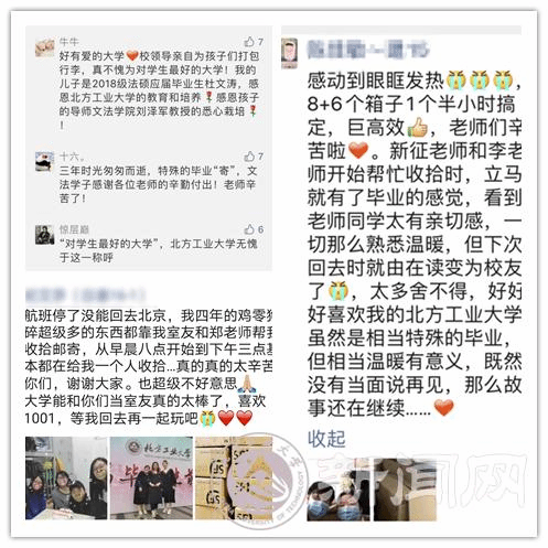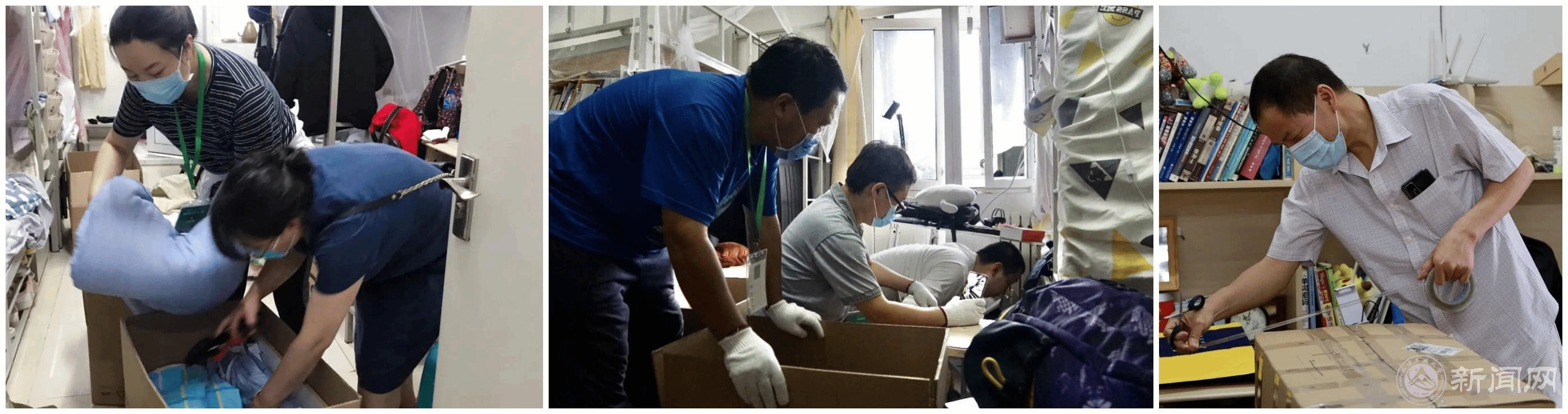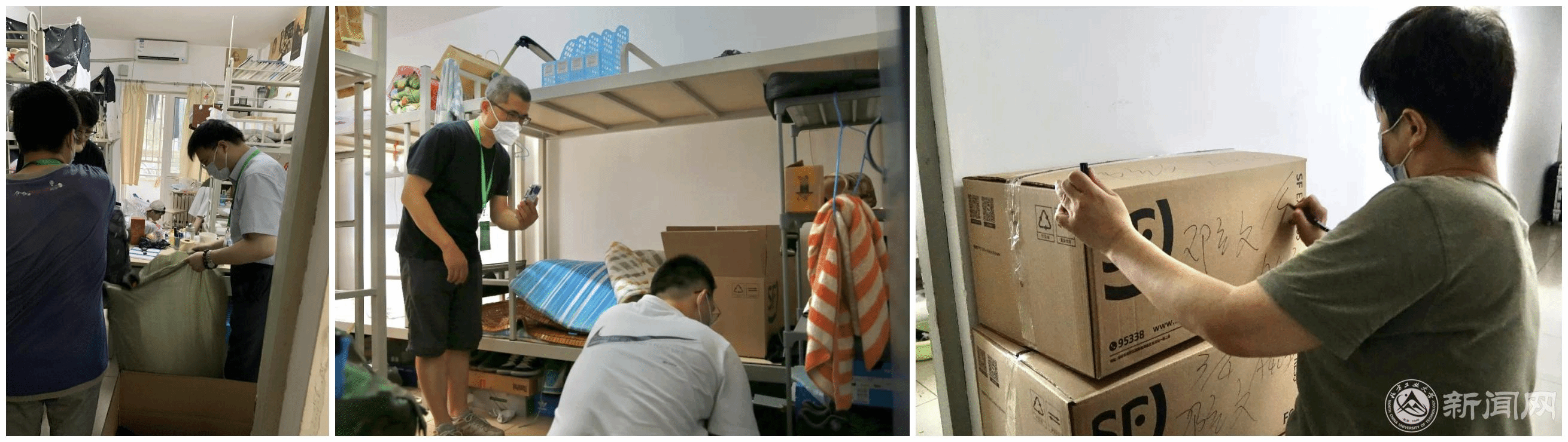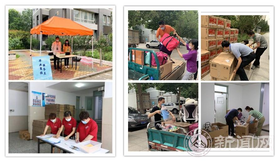在这次毕业生行李打包寄送的“大会战”中,学校充分尊重学生的意愿、保护学生的隐私,辅导员、班导师事先进行充分的调研和沟通,并通过现场视频对话的方式与学生逐一确认行李物品。平时让学生们仰慕敬佩的教授们、在讲台上侃侃而谈的青年教师们、在校园里默默奉献的干部们,都撸起了袖子,在宿舍里整理物品、装箱打包,干得是热火朝天、汗流浃背。老师们都表示,这一届毕业生太不容易了,我们一定要尽最大努力让同学们少一些遗憾,多一分温暖。把对学生的爱和关怀一起装进行囊,通过一个个快递件送到学生手上。