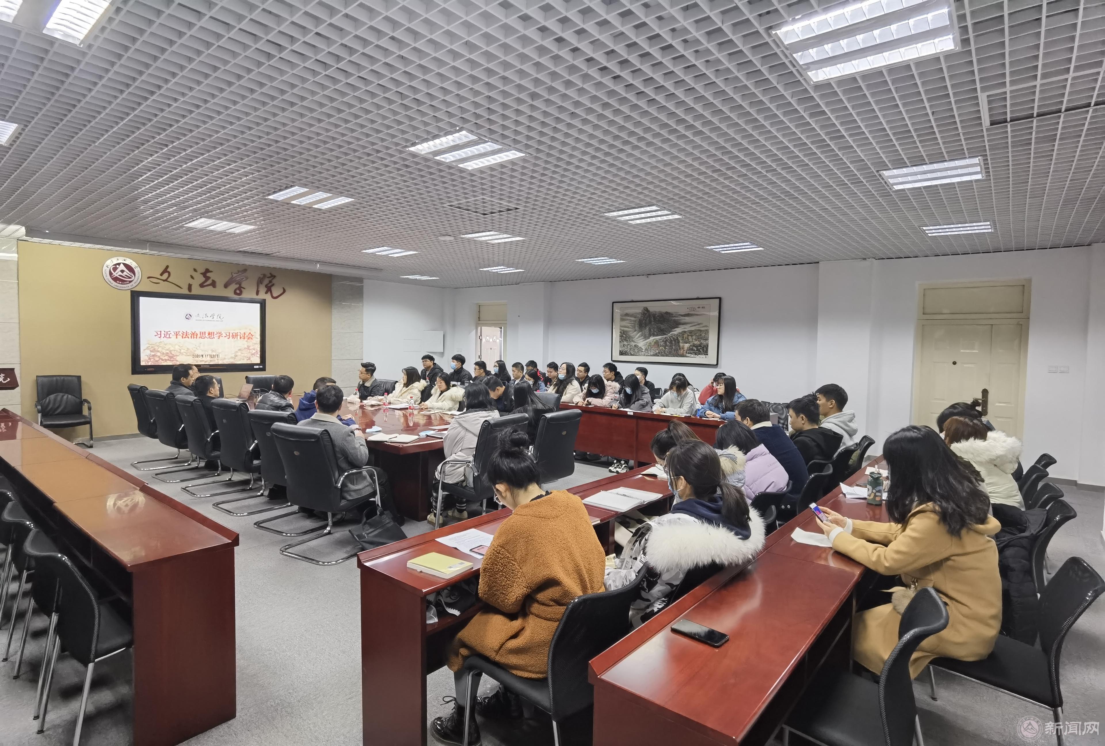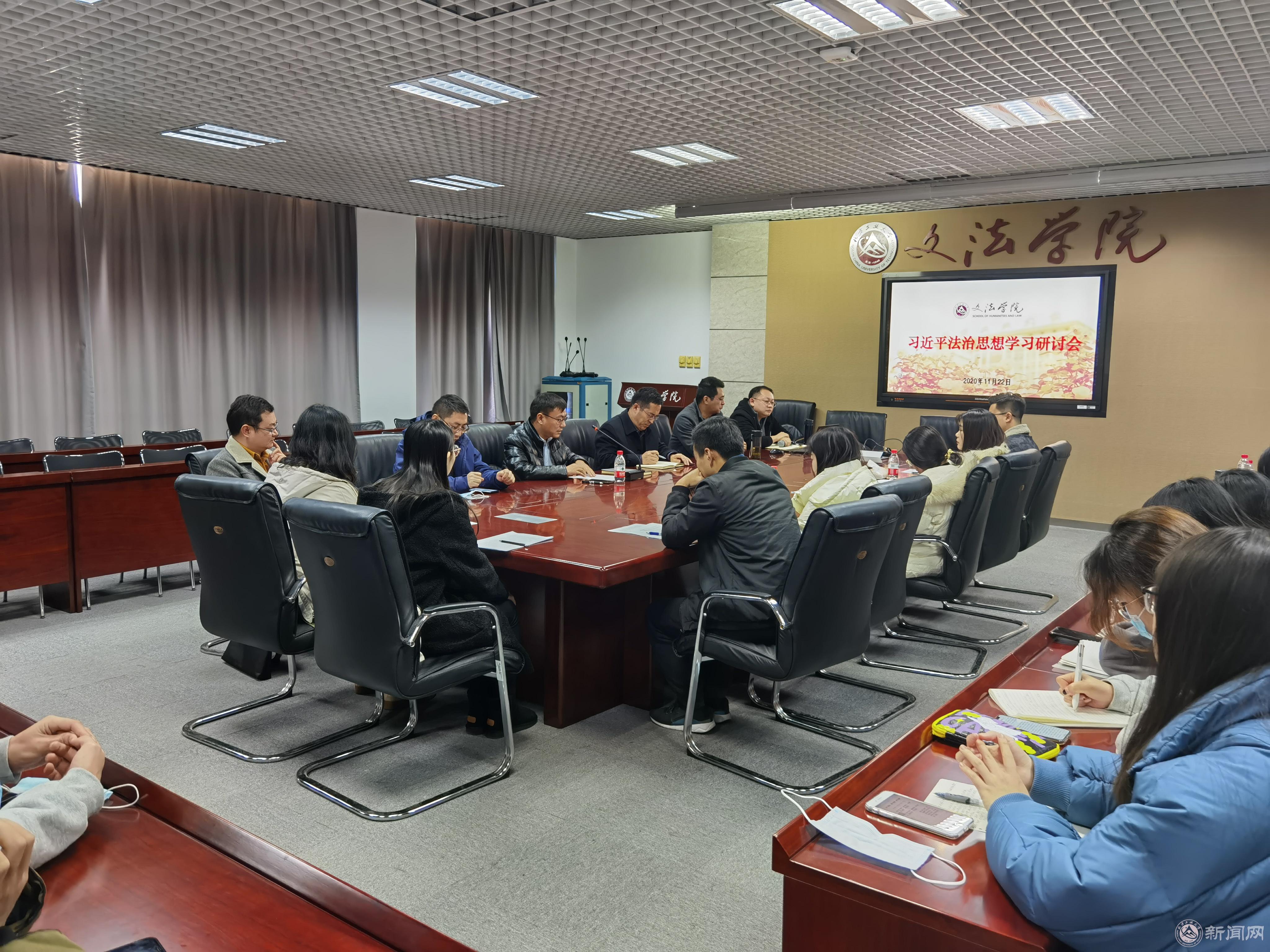 11月22日下午,米兰文法学院师生在瀚学楼710召开习近平法治思想学习研讨会,学院副院长袁凤识、副书记刘祥坠及部分师生代表共40余人参加了学习研讨。