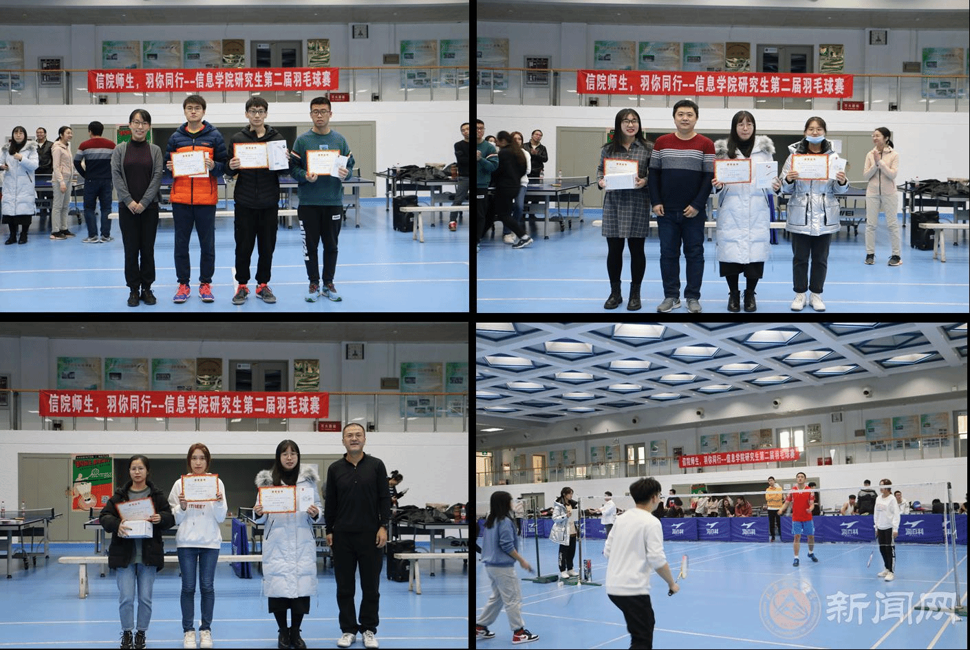 为加强研究生导学关系双向互动,丰富导学思政教育引领场域,促进师生积极参与体育锻炼,信息学院于12月6日和7日在体育馆一层举办“信院师生,‘羽’你同行”主题羽毛球赛,此次比赛首次开设师生组,学院教师与研究生自发组队、携手竞技,共38支队伍参赛。
