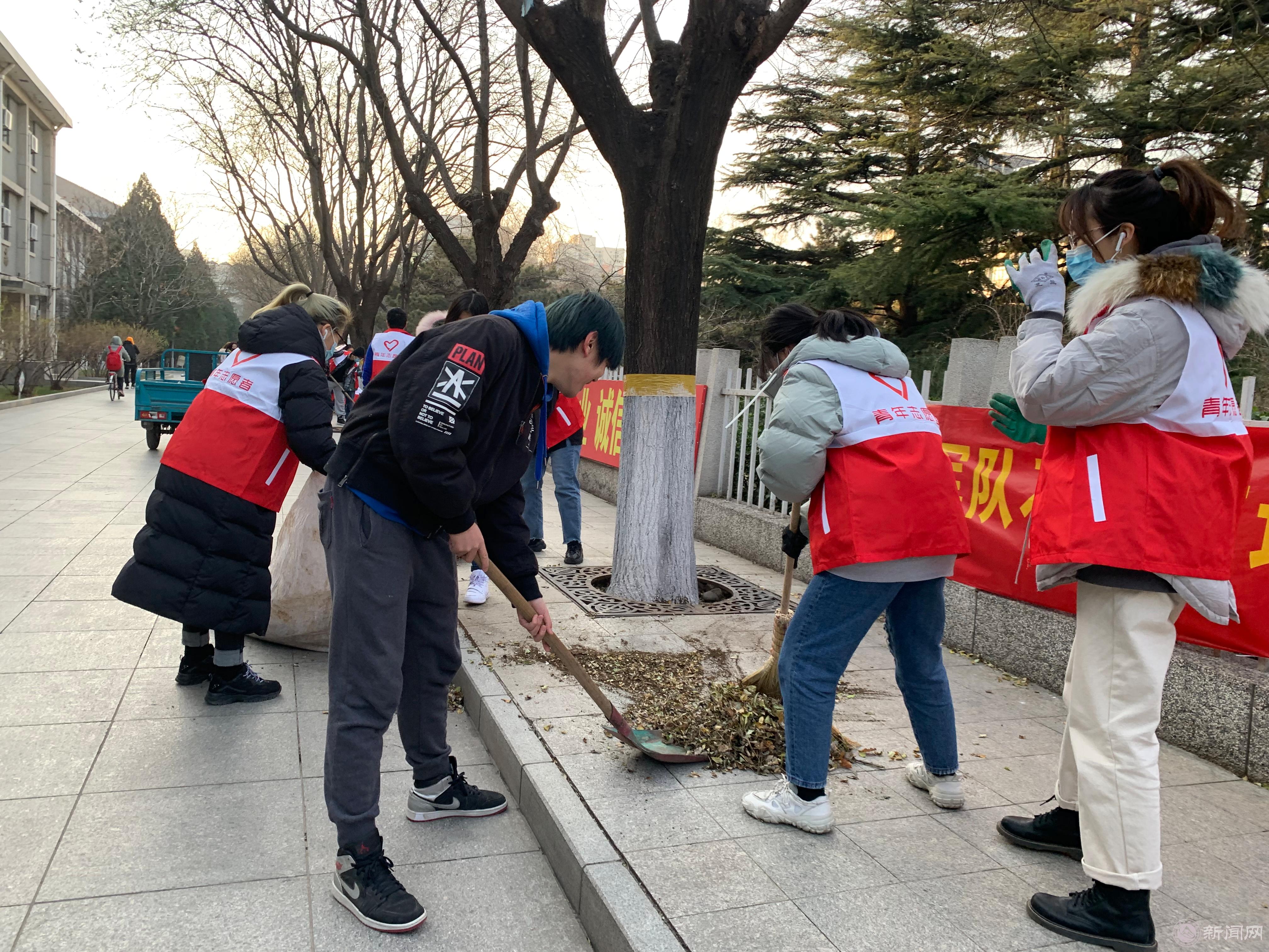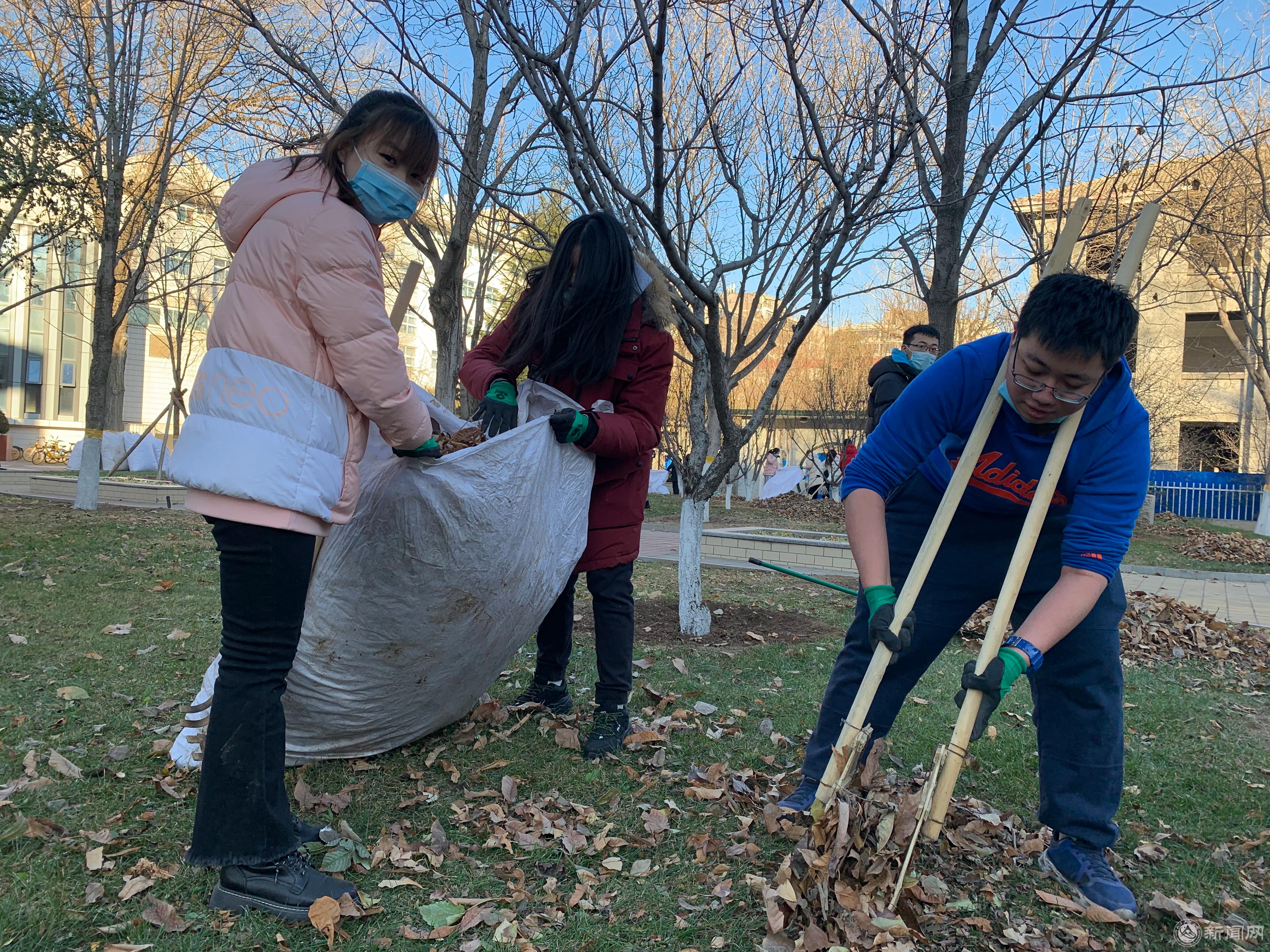 大雪已至,落叶增多,为进一步增强学生的环保意识,发挥学生参与绿化美化校园的积极作用,促进学生德智体美劳全面发展,近日,服务中心与文法学院持续开展“美丽校园,从我做起”环境清洁活动。