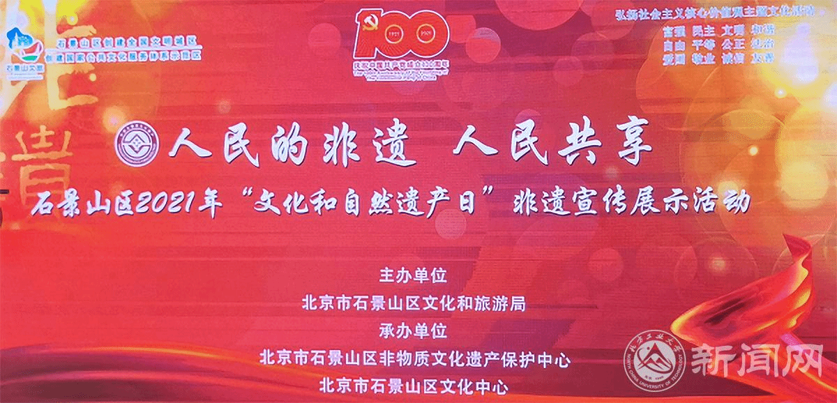 6月9日上午,主题为“人民的非遗人民共享”2021年石景山区“文化和自然遗产日”非遗宣传展示活动暨石景山区非物质文化遗产保护中心开放启动仪式在石景山区文化中心举行,北京市文化和旅游局非遗处处长张迁,东城区文联党组书记、主席张志勇,北京文化艺术活动中心研究员、北京民间文艺家协会副主席石振怀,天津市非遗协会,石景山区相关单位领导共同参加了此次活动。米兰经济管理学院师生应邀在活动中展示非遗传承传播工作成果。