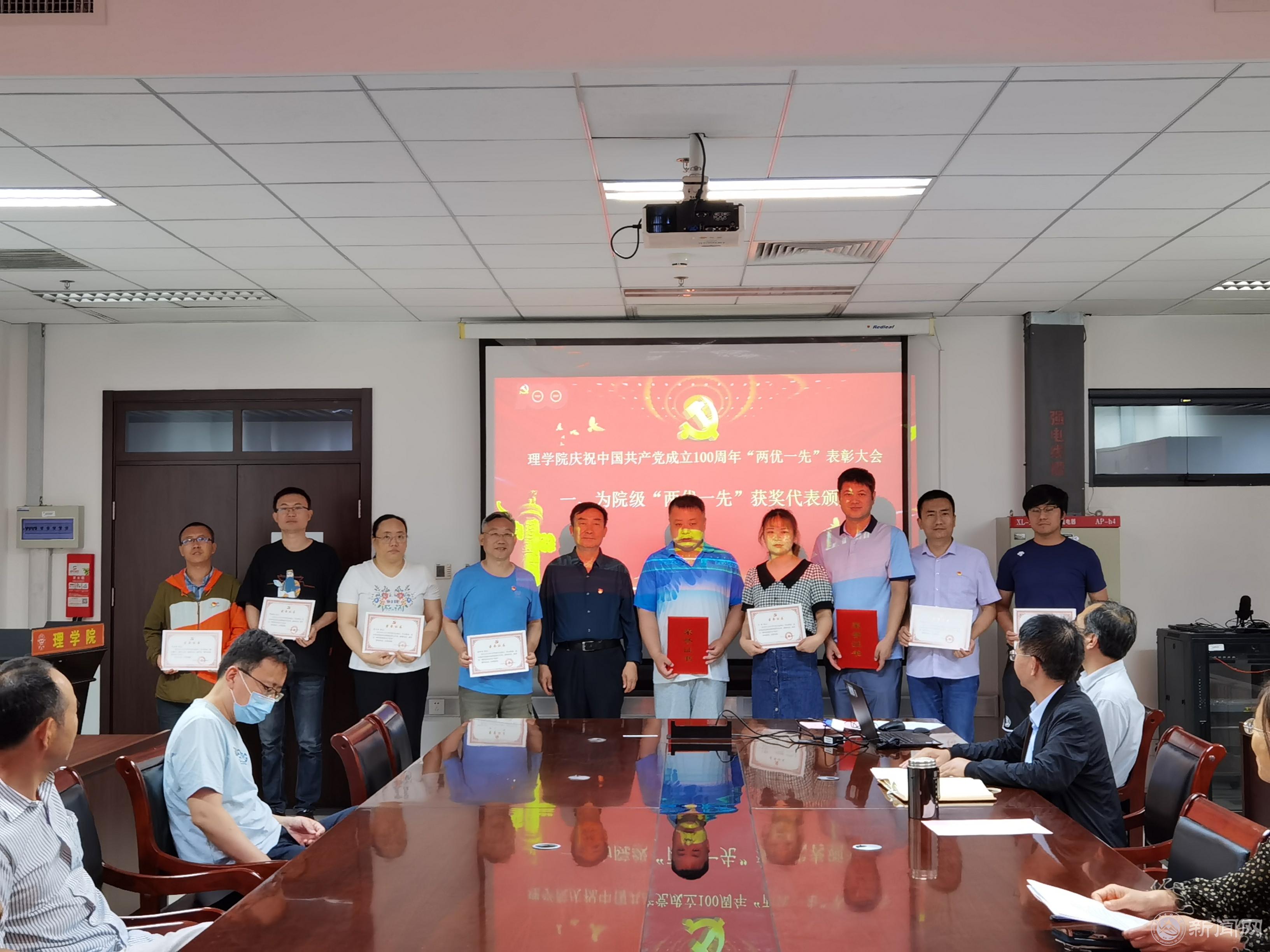 7月1日上午,理学院在博远楼805举行庆祝中国共产党成立100周年“两优一先”表彰大会。学院党委委员、学院领导班子全体、学院全体教工党员参加了会议。会议由理学院党委副书记李冱岸主持。