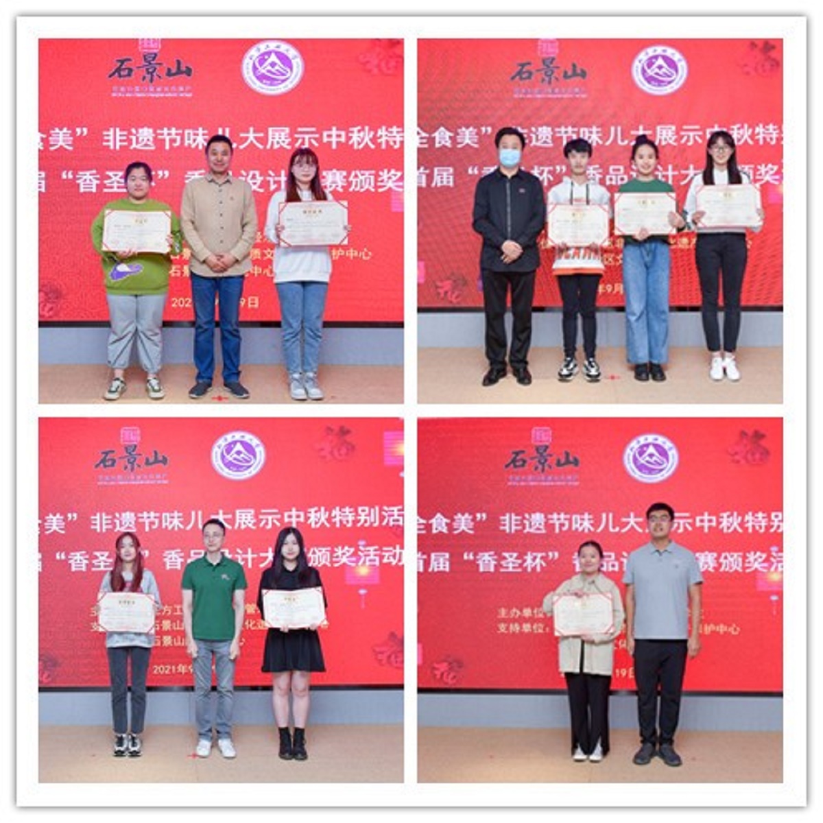 非物质文化遗产中蕴含着中华民族伟大的民族精神,承载着上万年的活态文明史。为弘扬中华民族传统文化,营造喜庆祥和的中秋节日氛围。经济管理学院于9月19日在石景山区非物质文化遗产保护中心举行“食全食美”非遗节味儿大展示中秋特别活动暨首届“香圣杯”香品设计大赛颁奖活动。石景山区非物质文化遗产保护中心主任何京江,石景山区文化中心主任王红,非遗项目传承人孙亮、唐晟炜、徐楚,经济管理学院党委副书记赵洁、会计系第二学生党支部书记洪峰、学院辅导员张泽圣以及节日期间留校的40余位学生代表参加了此次活动。