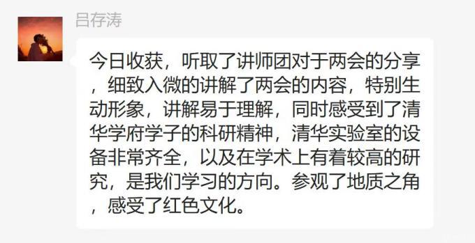 活动还来到清华大学地质之角宣讲站,聆听了爱国主义教育宣讲,学习清华精神,并在清华日、大礼堂、二校门等处合影留念。同学们不仅感受到了清华学子浓厚的学习氛围,勇于探索的科研精神,而且通过身边的同龄人同龄故事激励着自己要脚踏实地、勤学苦干、深入钻研,肩负起新时代所赋予的光荣使命。