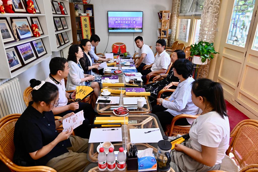 当日下午,调研组前往北京建筑大学与北京建筑大学校工会常务副主席刘艳华、副主席梁凯、兼职副主席聂跃梅等人交流学习。刘艳华从夯实工会“三性”、立足工会职能、增强教职工的职业幸福感、获得感、荣誉感等五方面详细介绍了北京建筑大学近年来的工会工作情况。梁凯、聂跃梅分别就青管赛组织工作和工会女职工委员会特色活动开展进行了经验分享。黄睿表示,北建大工会各项工作亮点突出,做了很多有益的探索和创新,有很多优秀的经验值得学习和借鉴,期待今后加强沟通和联系,取长补短,更好地服务职工群众,不断增强工会组织的凝聚力和向心力。