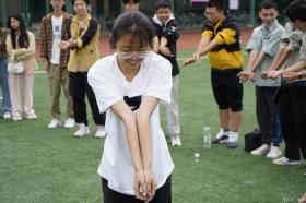第三个游戏“多姿多彩过国庆”。同学们使出浑身解数,有的翻跟头,有的俯卧撑,各展绝活,在展示自我的同时也加深了同学们间的默契。