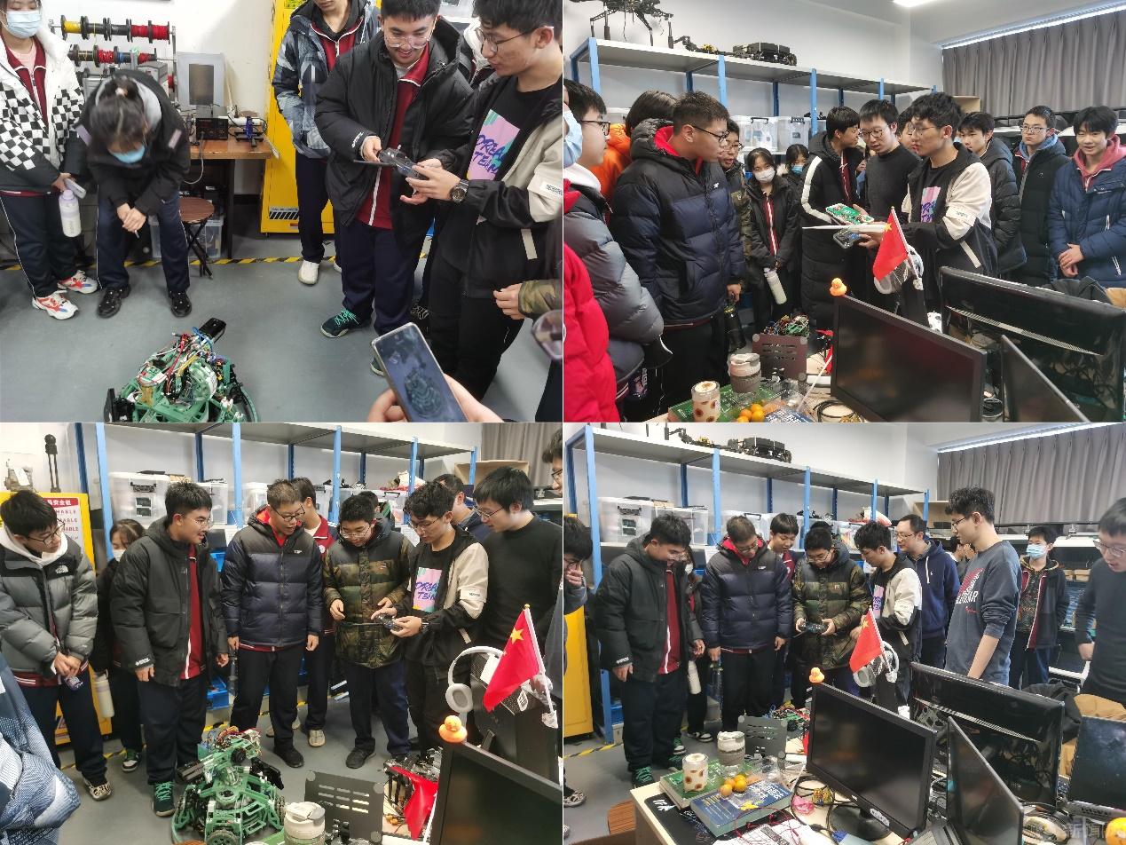 在电气与控制工程学院机器人实验室,毕松老师和他的学生为来访师生展示米兰在机器人大赛中的获奖作品,同学们兴趣高涨,驻足围观,尝试动手实际操作,沉浸式体验了科技的魅力。