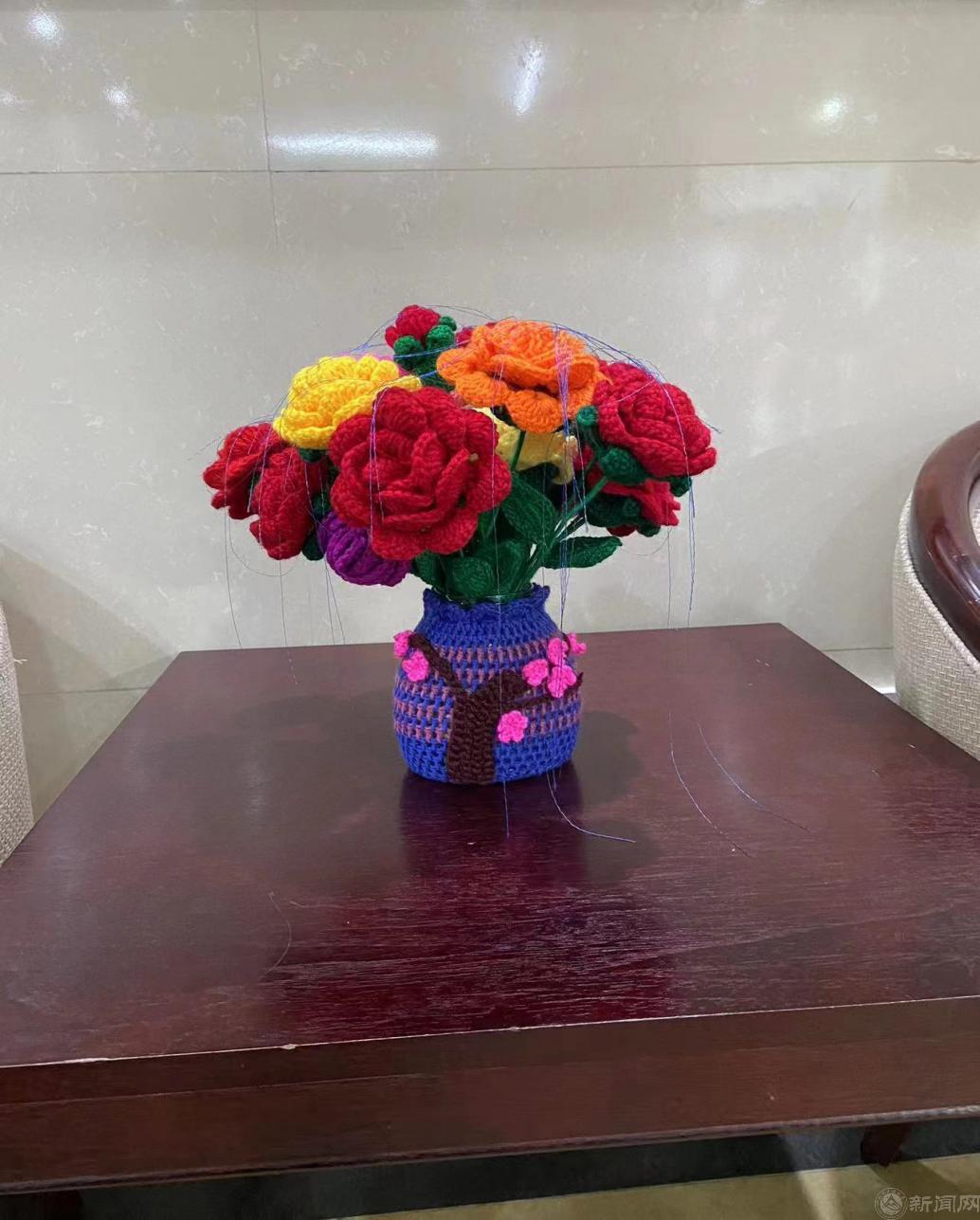 课程采用“1+3”组合模式,由1名工作人员指导3名学生开展钩织玫瑰花的劳动实践。按照指导老师讲解的钩织方法,同学们右手一支钩针,左手一团彩色的毛线,起头、入针、挑线、短针、长针,细心钩织起来。大家认真学习,相互之间还不时切磋交流着钩织技巧,一针一线,缠绕着浓浓的温暖和幸福。一朵朵立体美丽的玫瑰花逐渐成形,同学们在亲手实践中感受着钩织艺术的魅力。