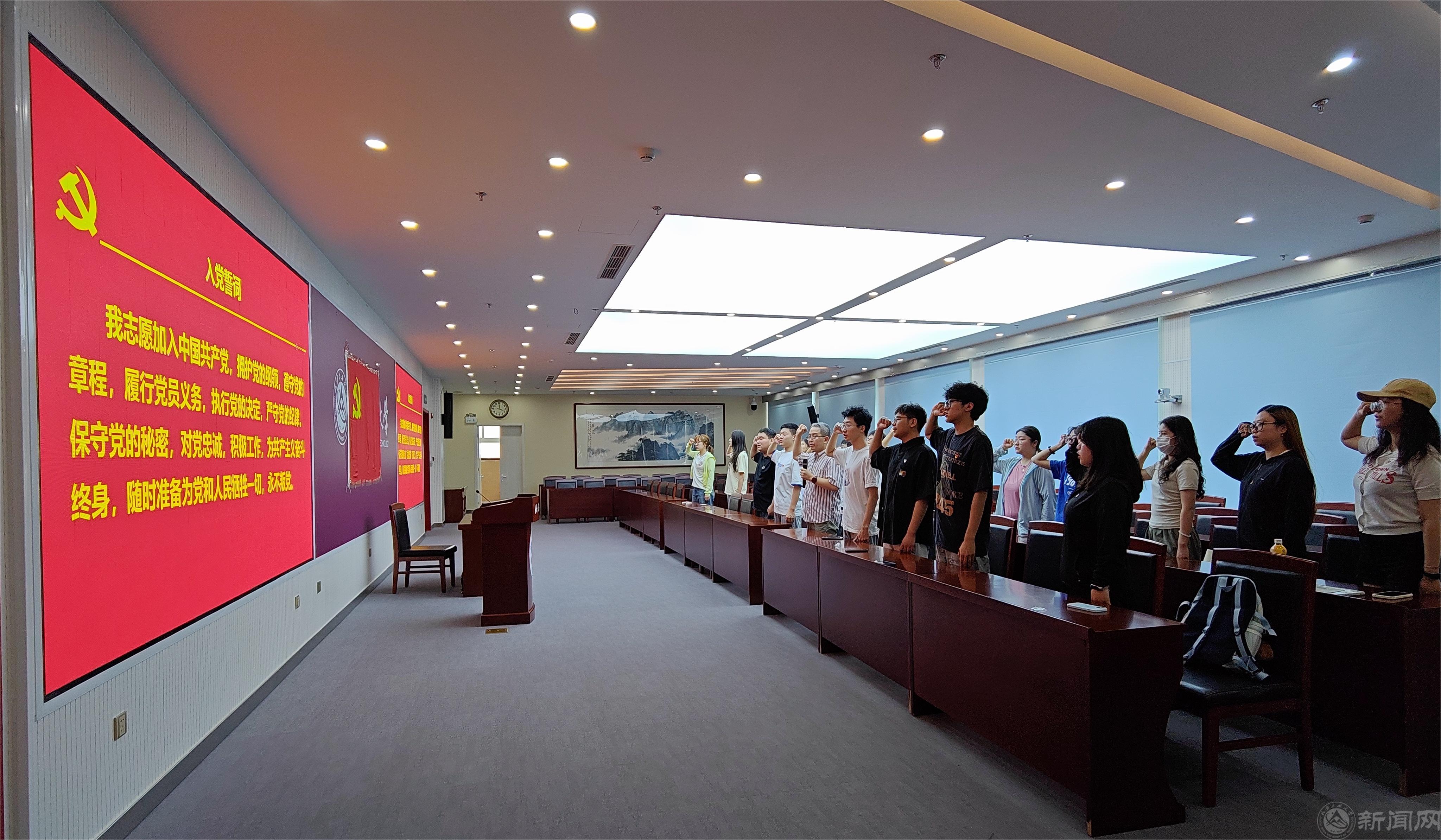 宣誓仪式在庄严的国际歌中开始,全体预备党员佩戴党员徽章,面向党旗,满怀激情、铿锵有力地宣读了入党誓词,许下了对党庄严而神圣的誓言。