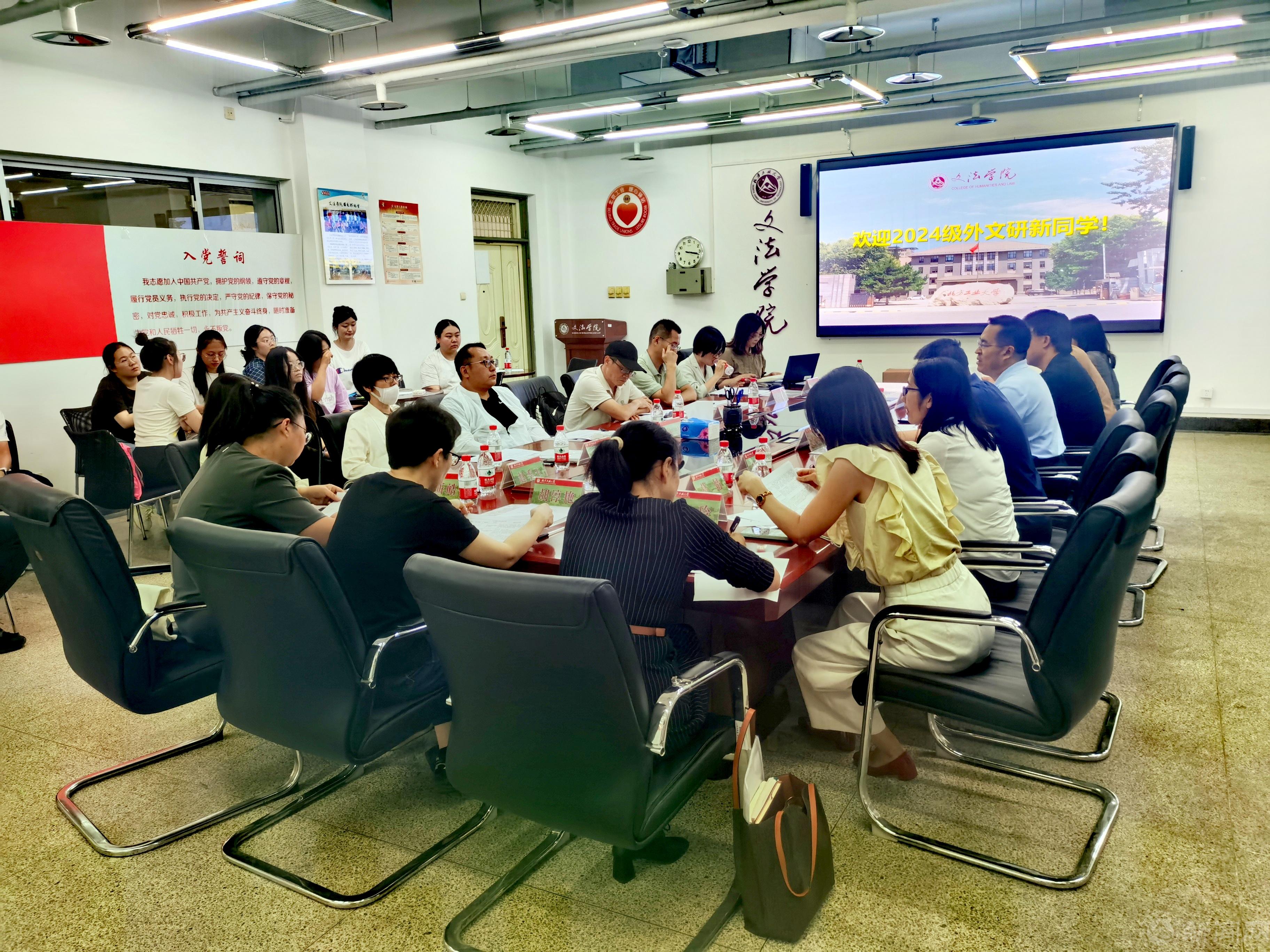 9月5日下午,法学、外国语言文学一级学科分别在瀚学楼610、714组织2024年研究生新生导师见面会。外国语言文学一级学科责任教授袁凤识、法学一级学科责任教授王海桥,各二级学科责任教授暨全体研究生导师,107名研究生参加了见面会。袁凤识、王海桥分别做了欢迎开场辞,并向新生同学介绍了学院发展历史和学科建设情况,对新生提出了殷切期待。各研究生导师们介绍了各自在教学与研究领域的情况,研究生新生同学们依次就个人基本情况、研究经历和研究兴趣进行了基本阐述,为后期顺利开展师生互选奠定良好基础。