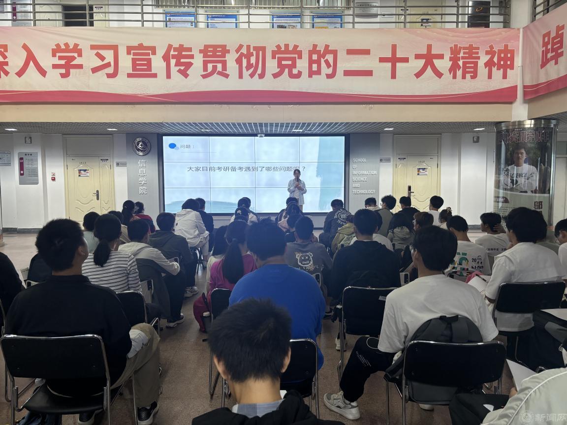 为帮助考研学生缓解考前紧张情绪,拥有更加轻松平常的心情以备战考研,9月26日,信息学院在瀚学楼10层大厅和学校小操场开展考研心理团体辅导。活动邀请了学校心理咨询中心王燕老师指导,毕业班辅导员、2024年考研学子及部分在校生参加活动。