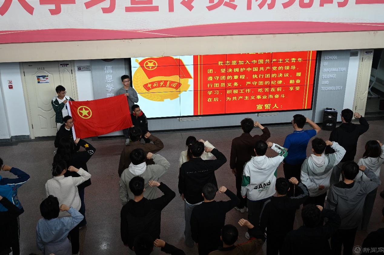 仪式现场,气氛庄重而热烈,新团员们怀揣着对团组织的向往和为共产主义事业奋斗的坚定信念,齐聚一堂。他们将在这个美好的秋天,用铮铮誓言奏响青春的乐章。