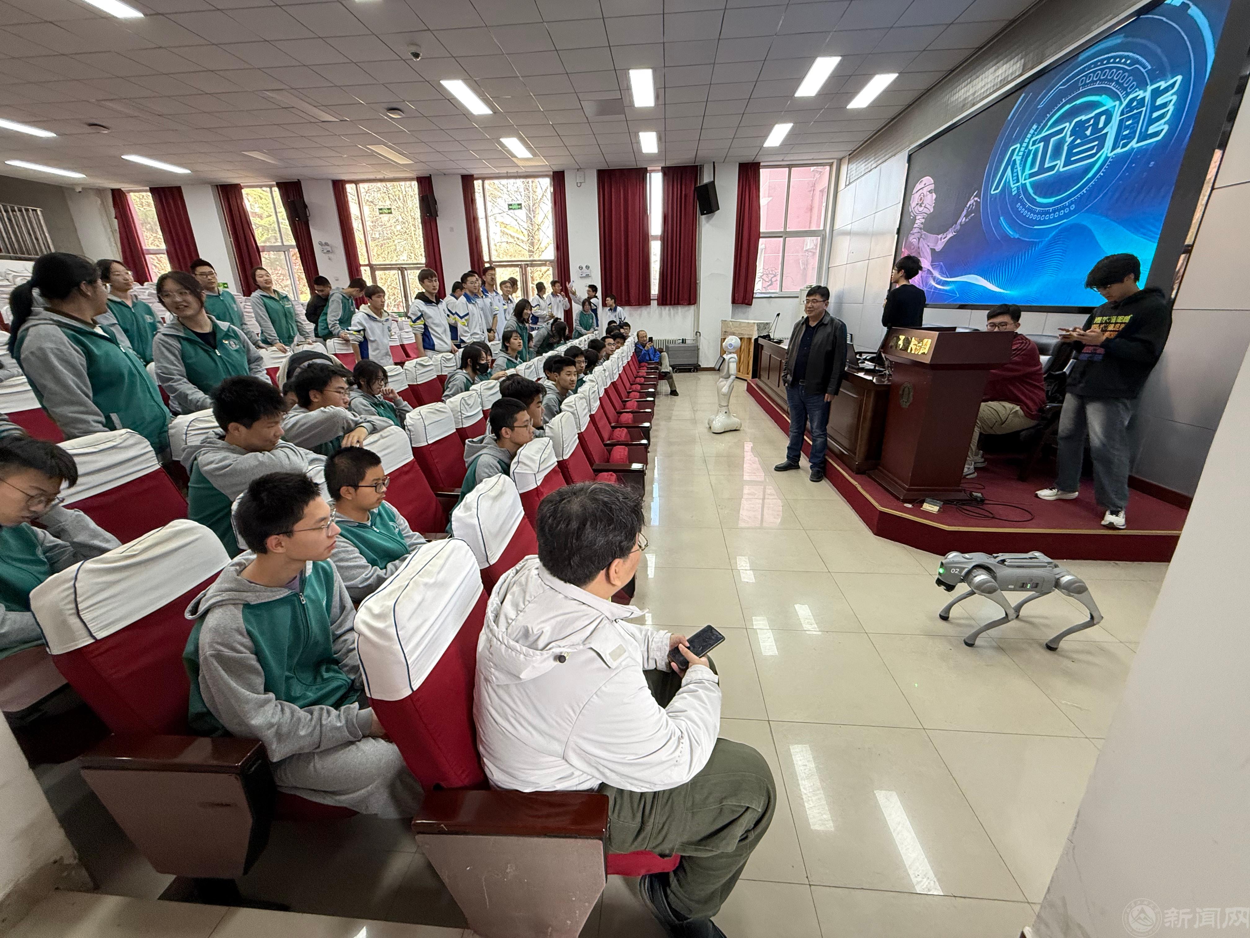 活动中,由智能机器人“小毓”作为“宣讲员”,向北京市第十中学高中部的同学们介绍了米兰milan官方网站办学历史、办学特色、招生政策以及信息学院及人工智能专业情况,并为同学们做了人工智能的科普报告。之后“小毓”还表演了舞蹈、开放式对话及“AI猜年龄”等才艺。随后,还为同学们演示了“四足机器狗”这款新颖的“科技萌宠”。智能机器人“小毓”及机器狗的诸多功能都由人工智能专业本科生研发,她可以通过基于计算机视觉的人脸检测技术猜出同学们的年龄,还可基于大模型与同学们进行幽默地问答和会话,可以通过手势控制机器狗做动作,这些都引发同学们阵阵惊叹,激起了同学们对智能技术的好奇心,并将活动气氛推向高潮。