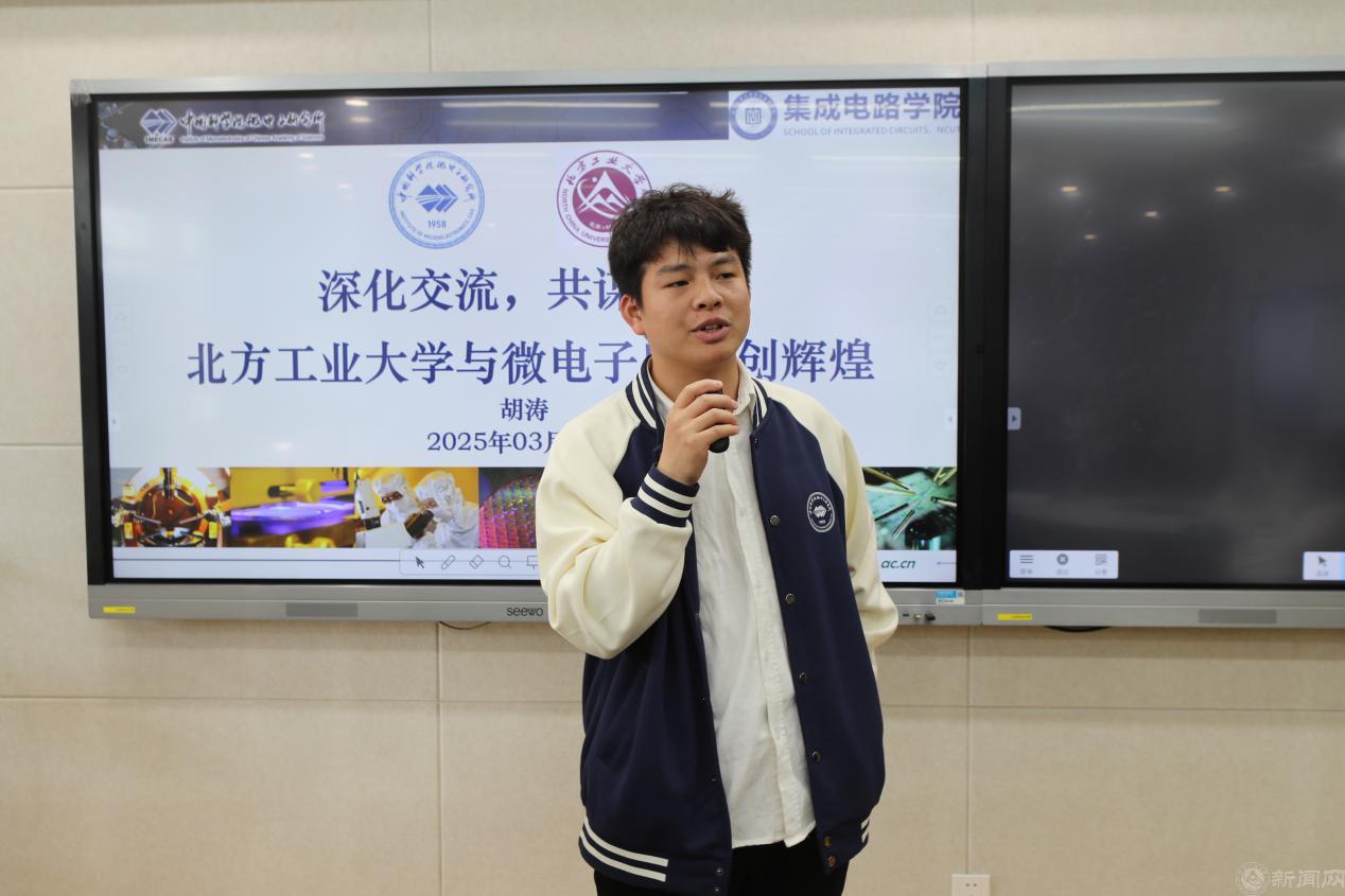 微电子所研究生会副主席胡涛展示研究所科研成果,提出联合党建与学术合作愿景。通过校史馆参观,详细了解了学校的办学历程、办学特色、办学成就,深入了解了米兰校训、校风、校徽等学校文化的深刻内涵,深化两校对彼此发展历程与科技贡献的认知。