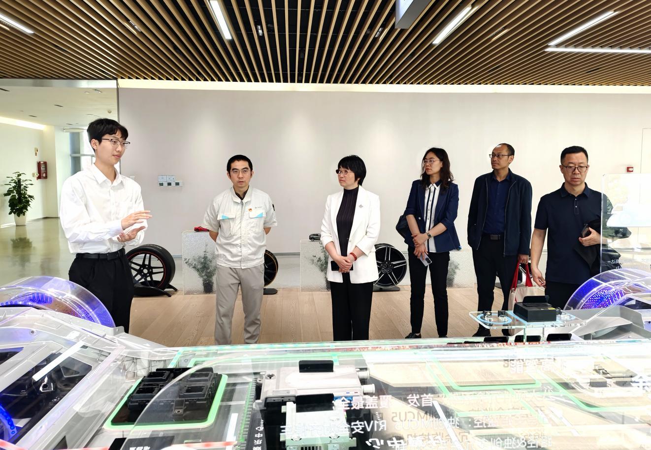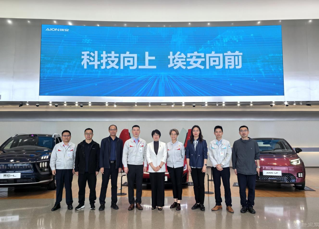 在广汽埃安新能源汽车股份有限公司人力资源部部长沈杰的陪同下,学院与会人员参观了广汽埃安的产品展厅和总装配车间,详细了解了该公司的发展历程、业务范围以及明星产品情况,对广汽集团在新能源汽车领域的创新成果和实力有了更加直观的认识。