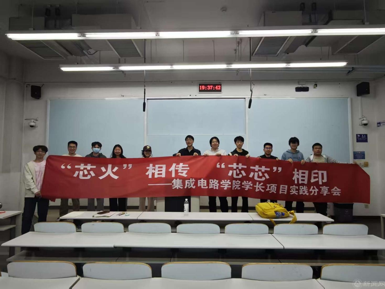 4月17日下午,集成电路学院在瀚学楼104成功举办“芯火相传·创芯启航”优秀学长项目分享会。本次活动邀请张恩鑫、郭竞天两位优秀学长进行项目的实践经验分享,系统讲解从立项筹备到技术落地的全流程。学院近70名本科生参加,现场互动热烈,学习氛围浓厚。