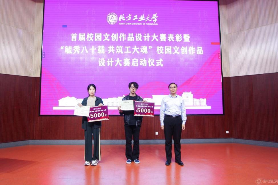 高国伟对合作公司的支持表示感谢,向获奖校友和同学们表示祝贺。他指出,校园文创作品设计大赛是贯彻落实习近平文化思想,推进文化育人在北方工大落地生根的生动实践。希望广大同学积极投身文化建设,用精彩的创意讲好“北方工大”故事,为繁荣和传承校园文化贡献青春力量。