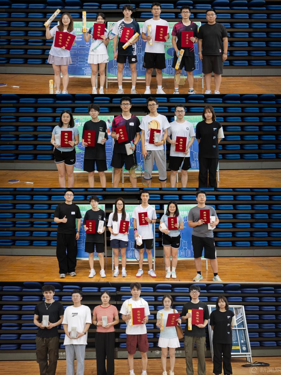 成果丰硕,青春高燃。经过一天紧张而精彩的角逐,各项赛事圆满落幕。最终,计专研-24田令华、王自豪斩获男双冠军;信研-23于文可、程丹丹荣获女双冠军;电24-2刘家宗、电科研-23张瑜夺得混双冠军;计专研-24隋中浩、计专研-23乔曦瑞、通信专研-23邱国帅获趣味团体赛冠军。校团委王铮老师、辅导员王免老师为各获奖队伍颁奖,并对大家的精彩表现给予充分肯定和鼓励。