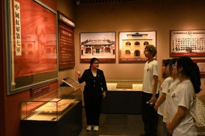 百色市乐业县是红七军、红八军会师根据地,红色基因深厚,革命根脉牢固。实践团走进红七军红八军会师纪念馆,在泛黄文献、锈迹枪械与场景复原中,追寻历史足迹,循着乐业县的历史发展脉络,体会其百年来的沧桑变迁。