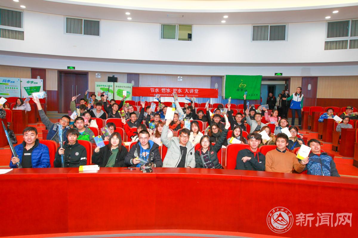 讲座结束后,由绿莽社骨干同学组成的节水志愿者向参与此次活动的同学们发放了节水宣传手册及印有节水标志的运动水壶,让大家在了解更多节水常识的同时树立节水意识,积极参与到“节水、惜水、护水”的实践中。