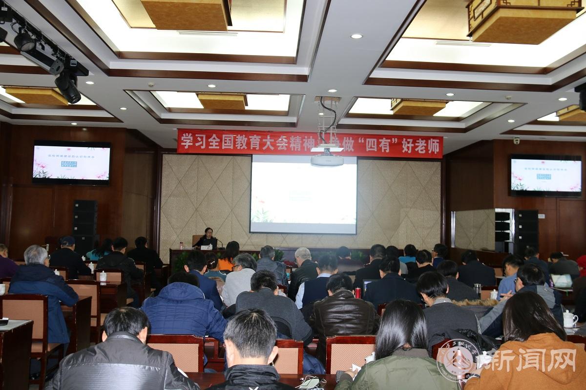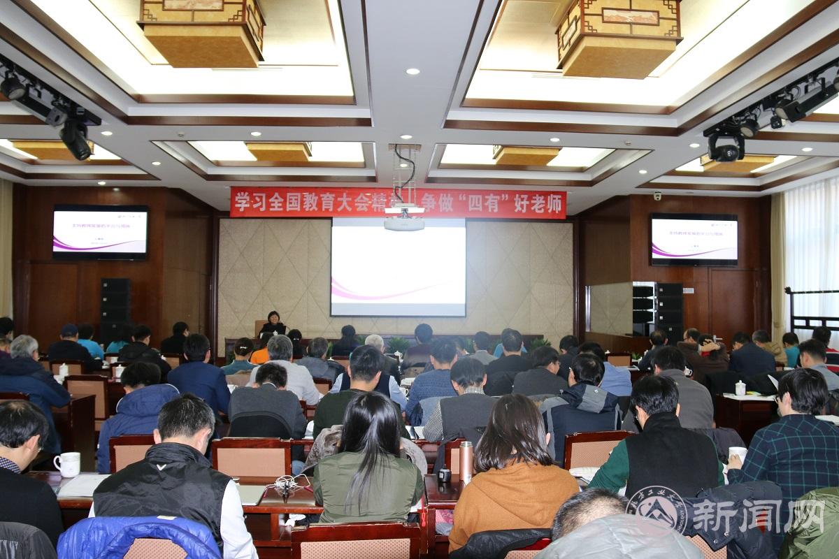 首都师范大学教师工作部部长苏寄宛老师以《高校师德建设的认识和体会》为题作报告。她从使命、形势、制度、底线、文化五个方面来话师德,通过优秀教师典型事迹来诠释师德的内涵,从职业角度看师德的意义,要把“三全育人”、“四有好老师”、“四个相统一”、“四个服务”、“四个引路人”内化于心、外化于行;面对当前的教育形势,苏老师进行了中外教育的对比,讲解了中华民族传统师德的延续与发展,强调在中国教育事业的发展与改革过程中,师德建设的重大意义和作用。