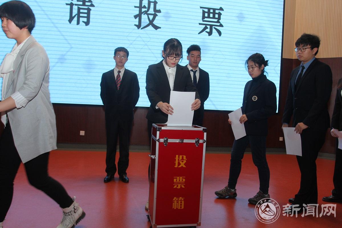 学生会主席王思源、研究生会主席杨婧分别代表学生会、研究生会作了工作报告,大会审议并通过了学生会、研究生会工作报告。随后,在大会总监票人主持下进行了选举,经无记名投票的方式选举产生了学院学生会、研究生会主席团。