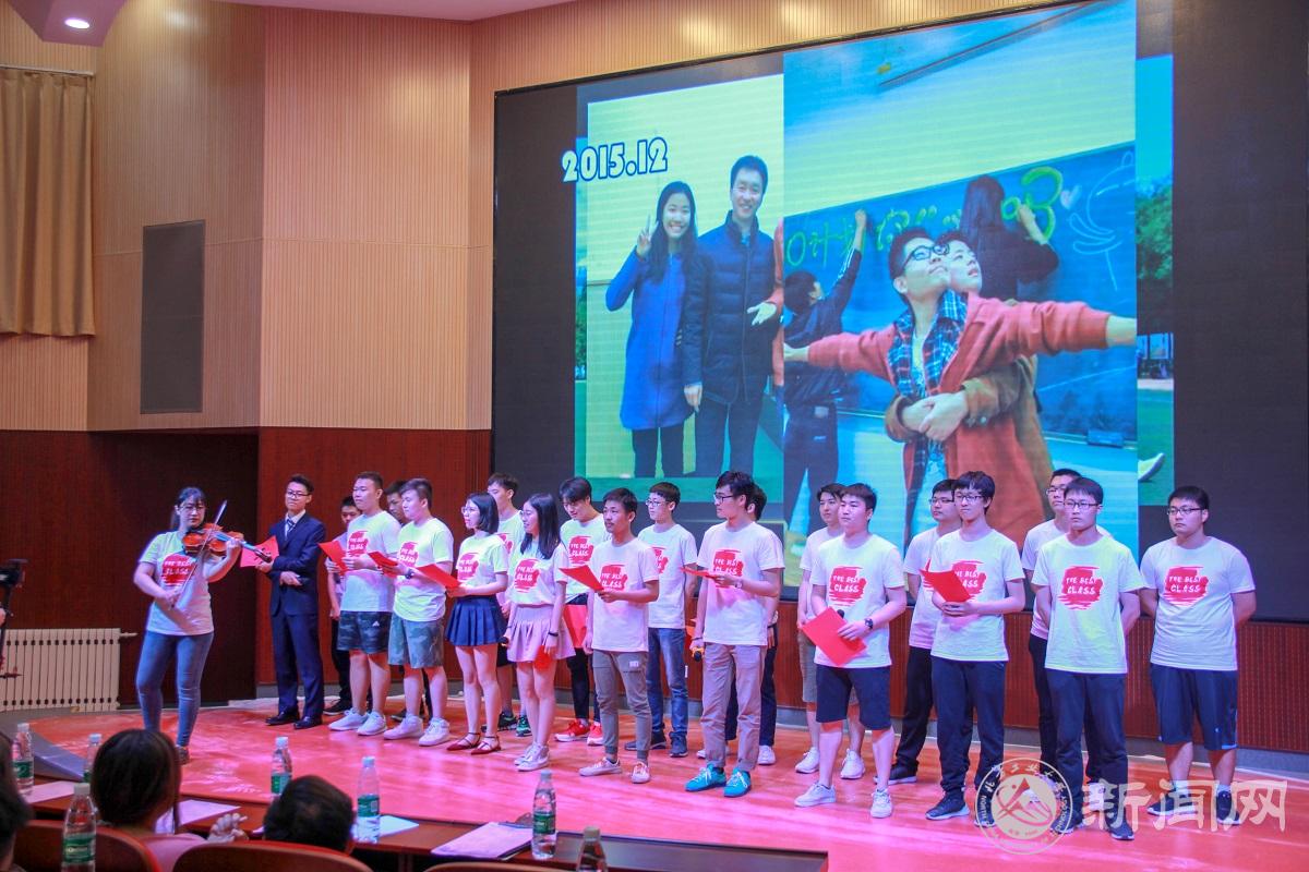 晚会尾声,15级辅导员石卉为毕业生送上了临别寄语,她将15级学生入学时填写的《给未来自己的一封信》和《大学梦想站》在晚会现场送还给同学们,并鼓励大家不忘初心,继续向梦想迈进。晚会在大合唱《我和我的祖国》中落下了帷幕。