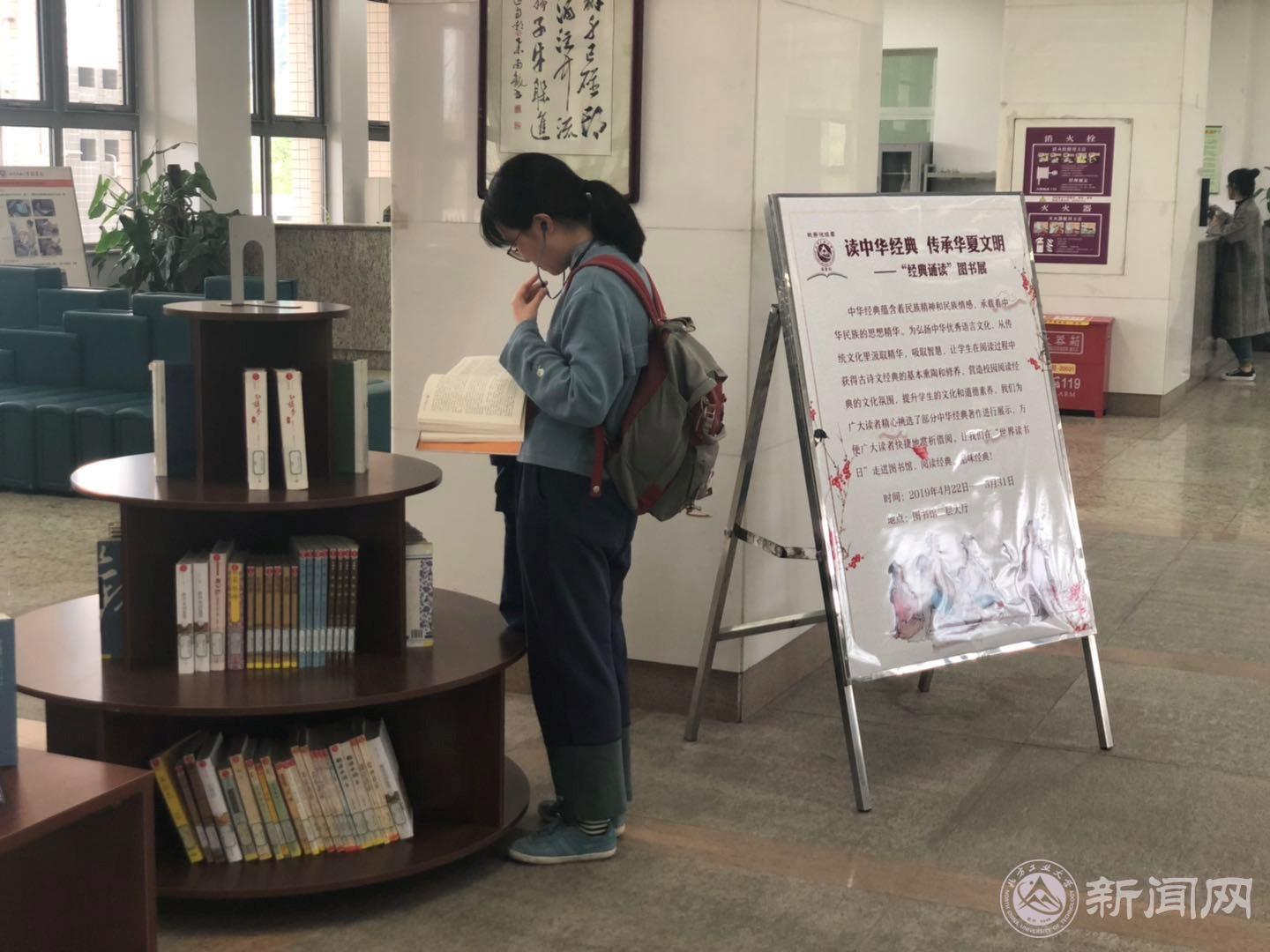 为展示中华优秀传统文化,把图书馆打造为中华经典“诵写讲”基地,图书馆在二层大厅设置“经典书目”展示台,吸引了大批读者驻足阅览。