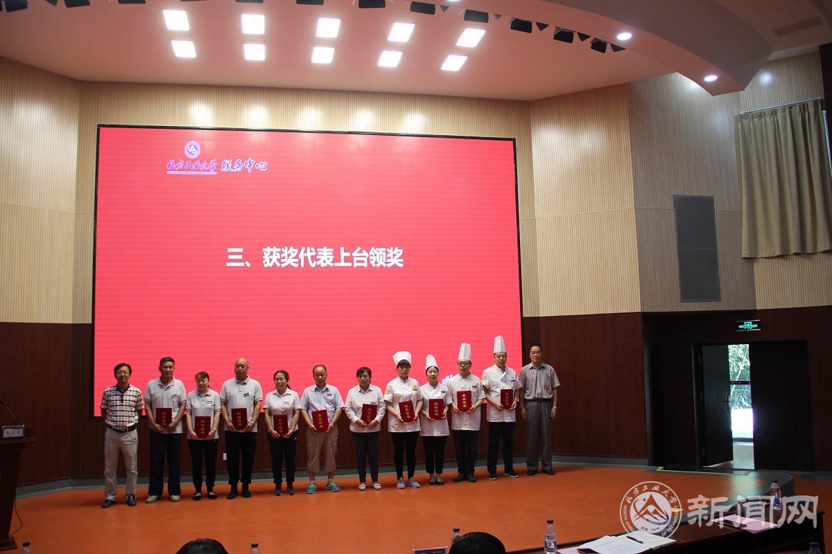 后勤基建处处长赵永兵宣读《服务中心关于表彰2019年“毓秀工匠”岗位技能大比武获奖人员的决定》,对取得优异成绩的职工进行表彰。后勤基建处处长赵永兵、服务中心总经理胡春江、后勤基建处副处长杨培鑑、刘通祥对在此次活动中获奖职工代表颁发了获奖证书。
